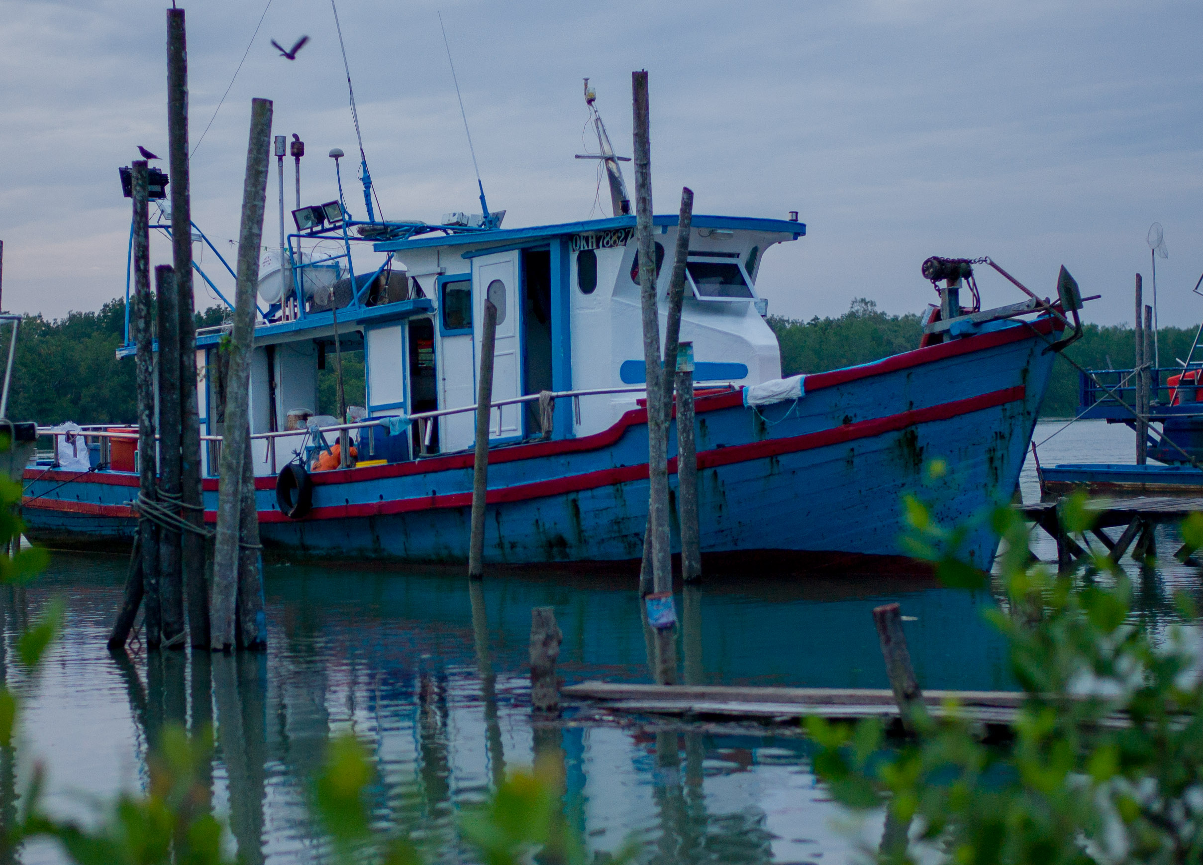 This long planned fishing trip involved us flying to Kuching from Singapore and transferring immediately on to our fishing boat at the Santubong jetty. There were seven of us and three crew which was a bit of a squeeze for our boat but just about ok. The omens were not good as it started raining just after we loaded up… we had intended heading out to sea to start fishing that night but the string winds meant it was safer to stay in the river estuary and wait till the morning…