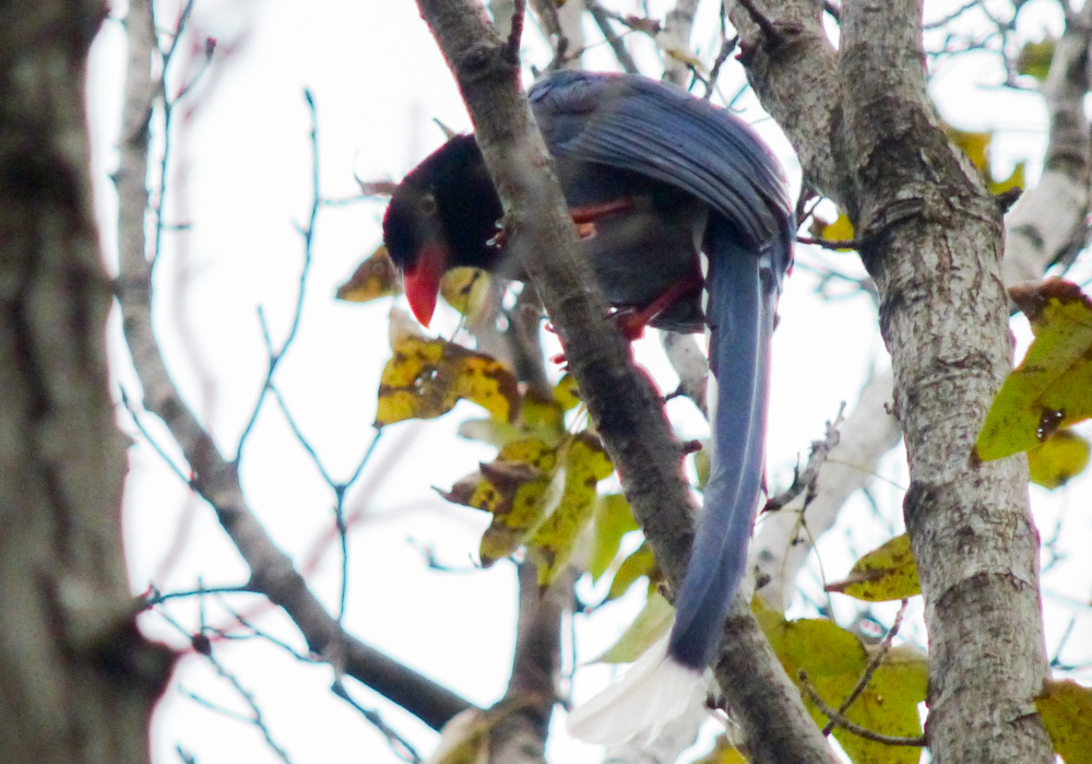 And then this slightly larger bird appeared…the blue sheen and the white barred tail confirming the beautiful Formosan Blue Magpie..the national bird