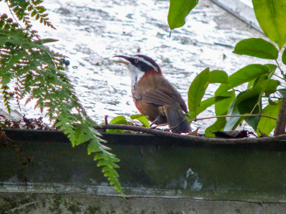 and then another lifer appeared…the Taiwan Scimitar Babbler…here pecking the leaves in the roof gutter