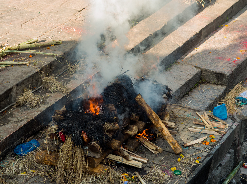 The next day we chose to visit Pushpatinah, a part of the city near the east on the river, where the dead are brought to be cremated 24/7. It’s a fascinating place and we could observe the rituals accorded to the deceased prior to the cremation on the open pyres…