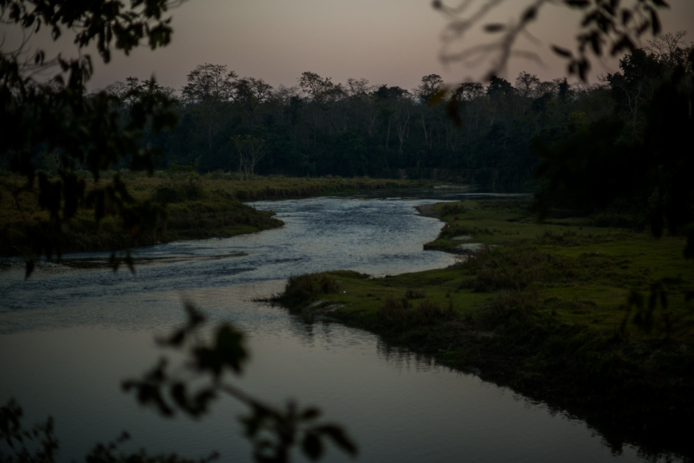 As the sun set, we took our shoes and socks off to wade across the Rapti river back to our lodge