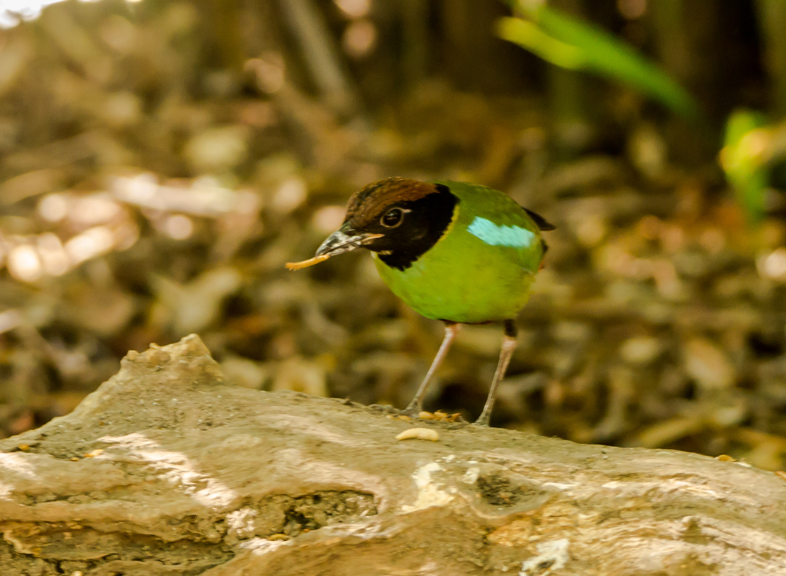 the blue winged pitta for comparison…note the prominent buff lateral stripe just above the eye which distinguishes it from the mangrove pitta