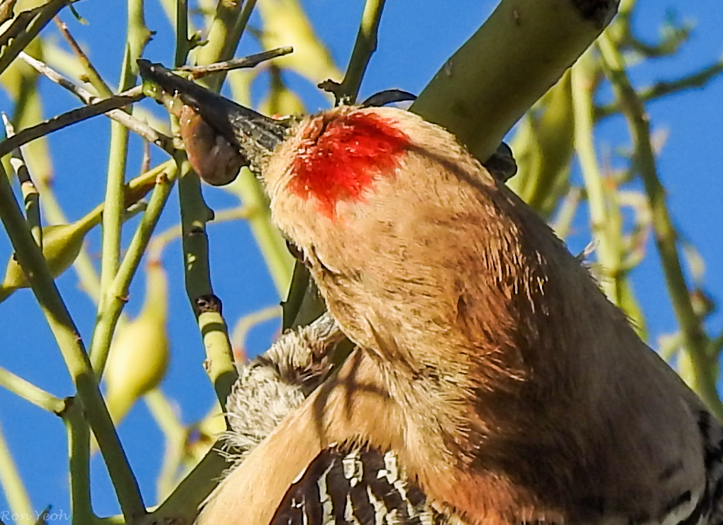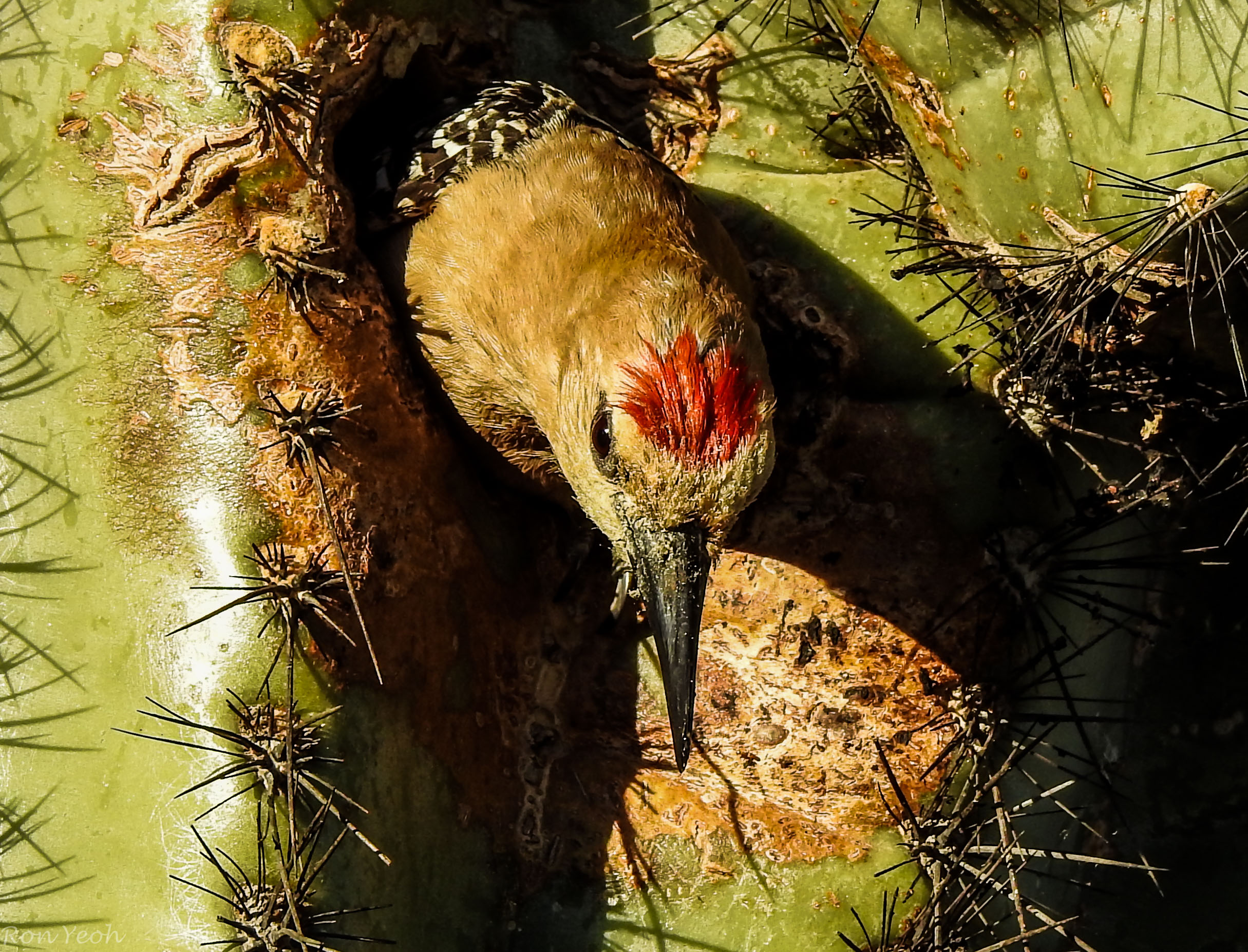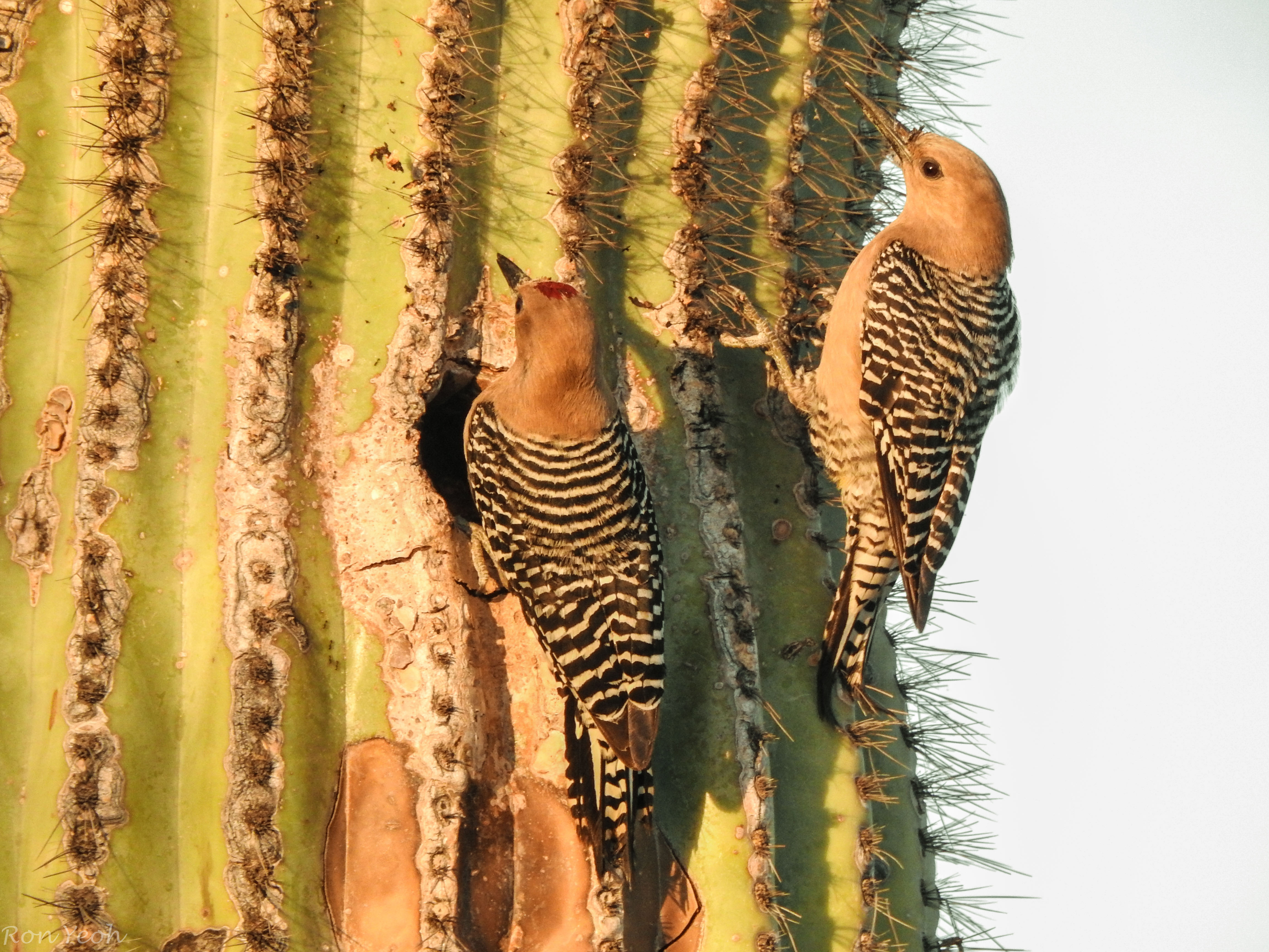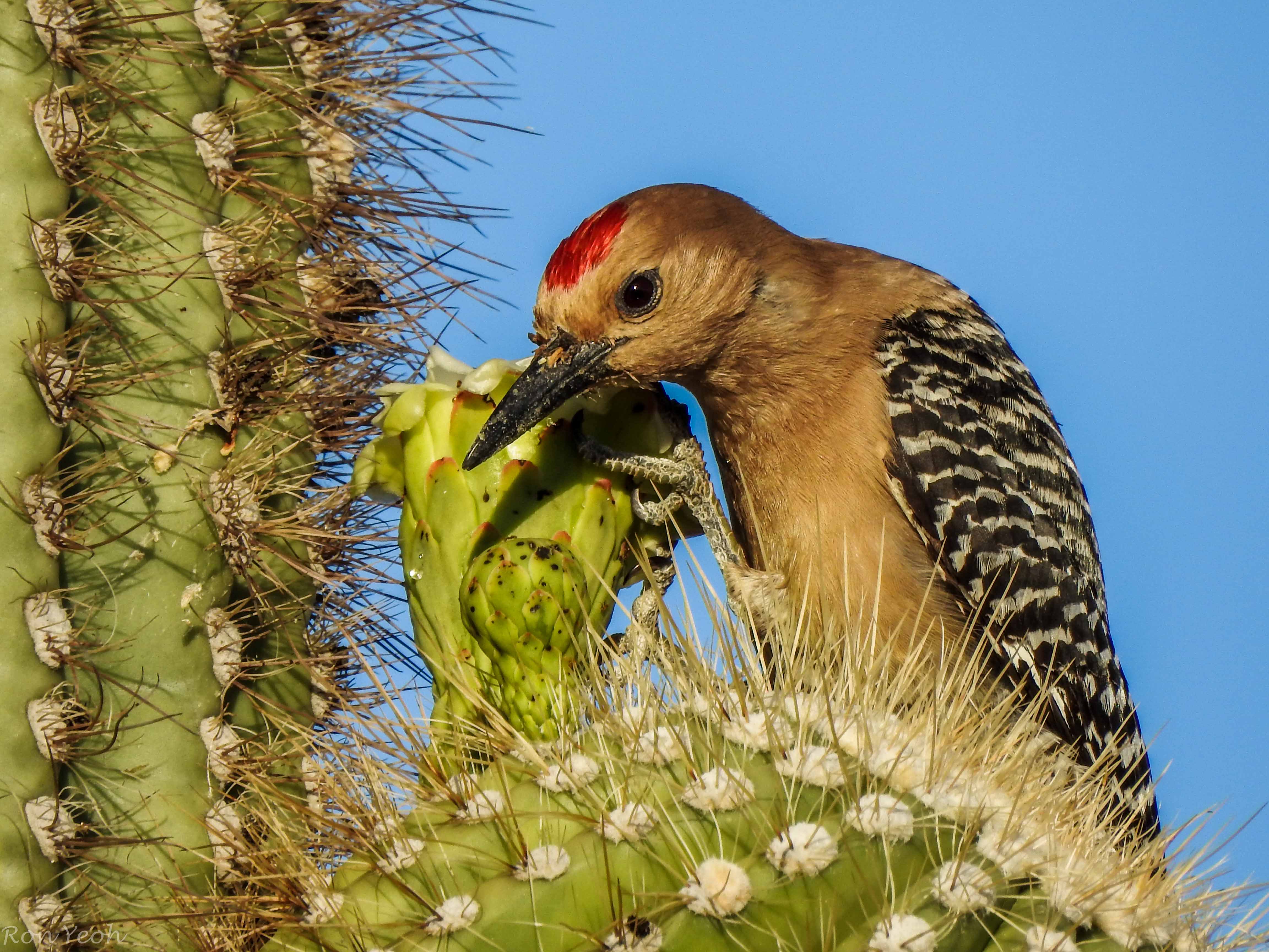 The made their nests in the holes of the giant Saguaro cactus..here we see a couple, the male with the red cap