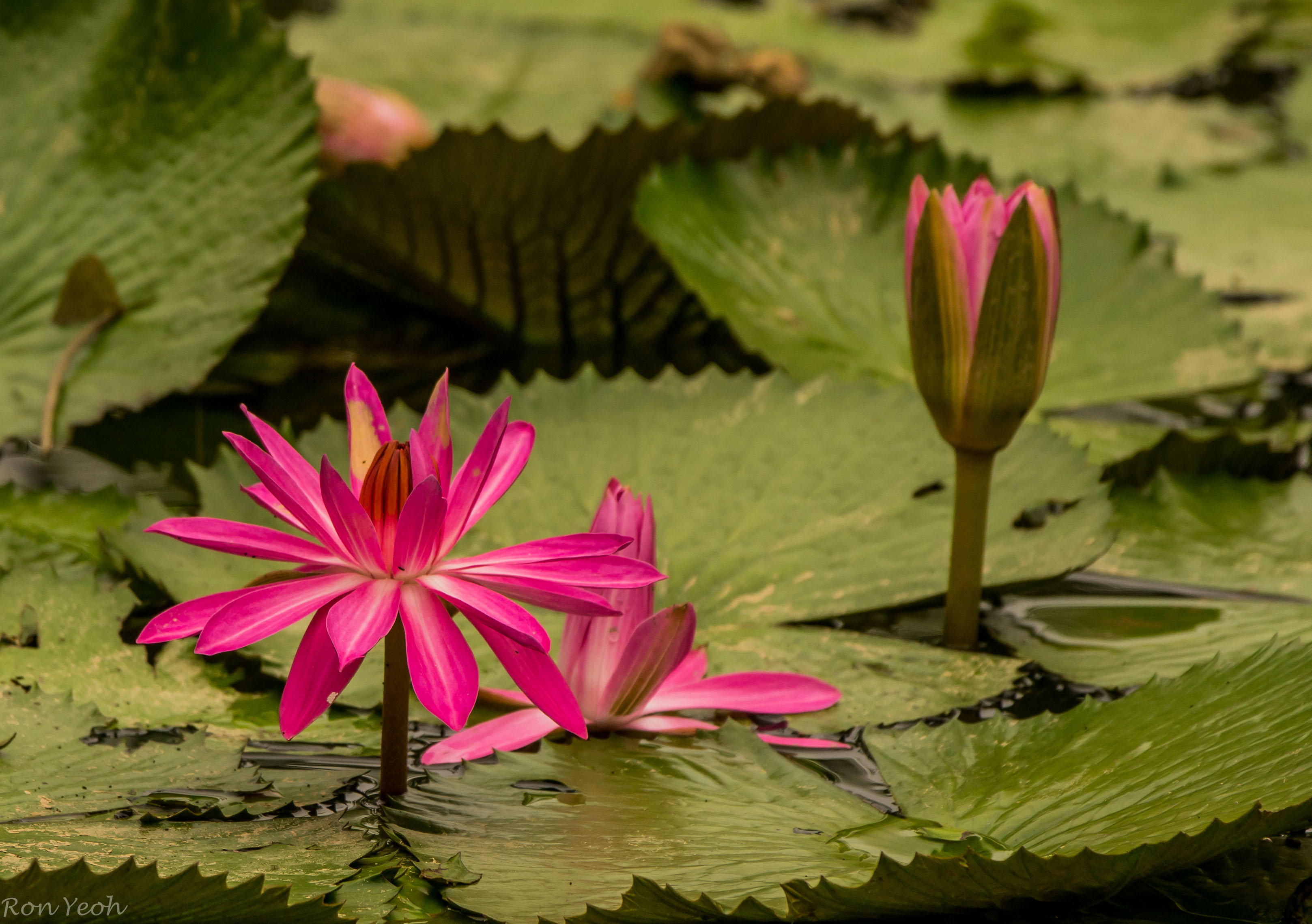 This is an interesting shot…it shows the lotus bud on the left….a fully open flower next to it and on the right, the maturing fruit pods…
