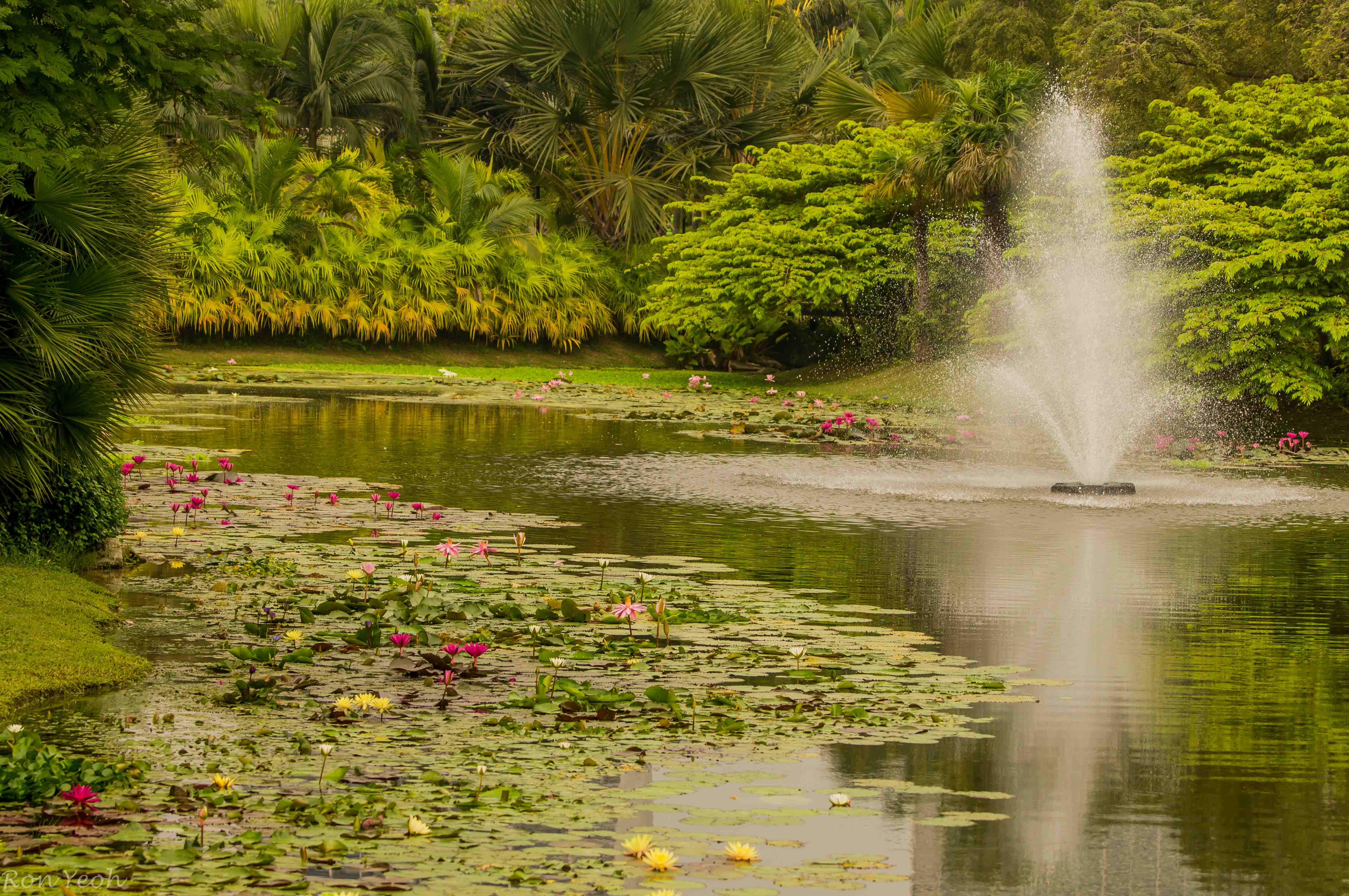 Waling along the path, there is a bridge overlooking two sides of the lake….on this side a beautiful lily pond with a fountain….