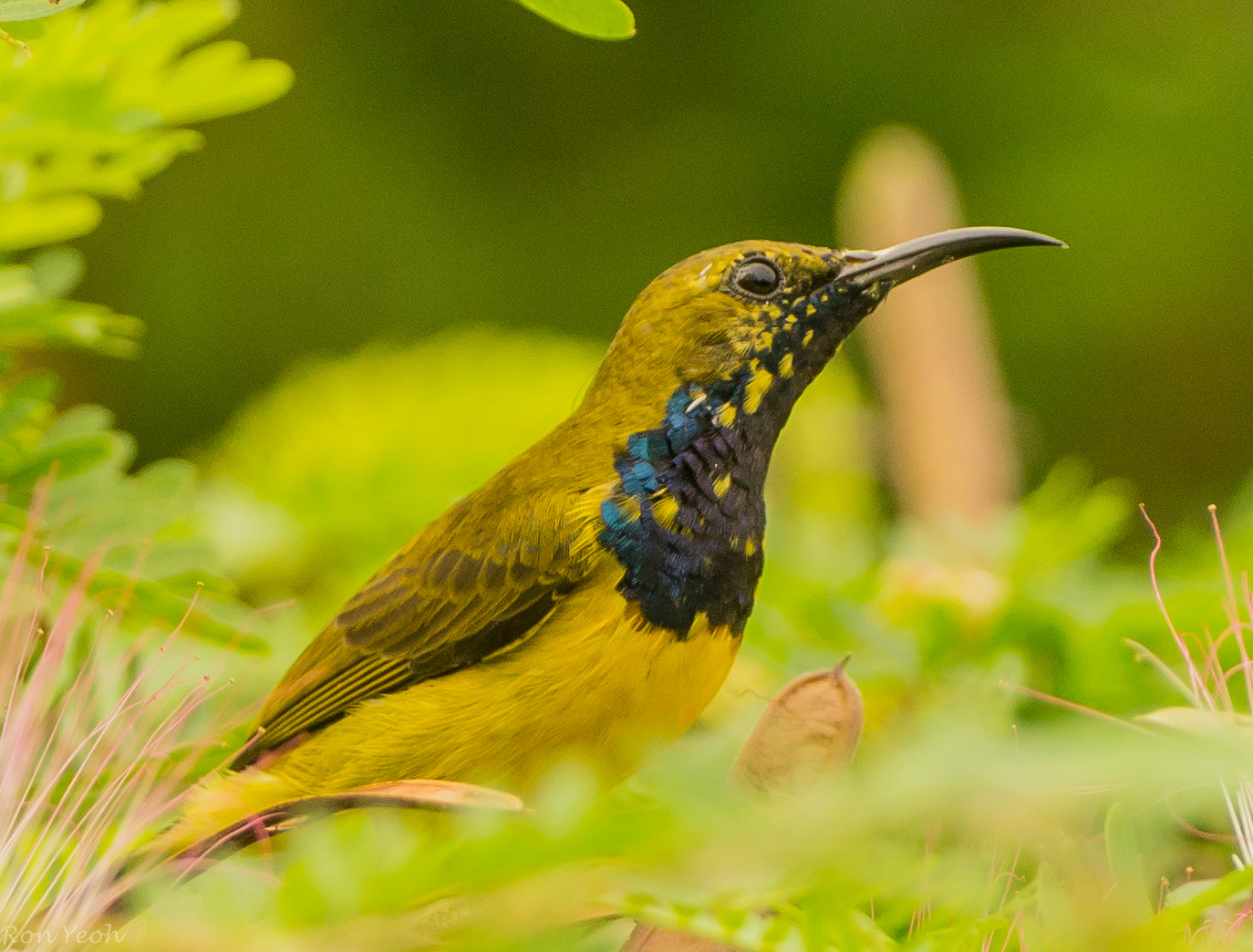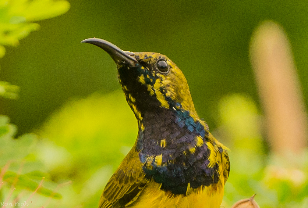 the throat of the olive backed sunbird looks black….until the sun catches it…then the multicoloured hues appear…
