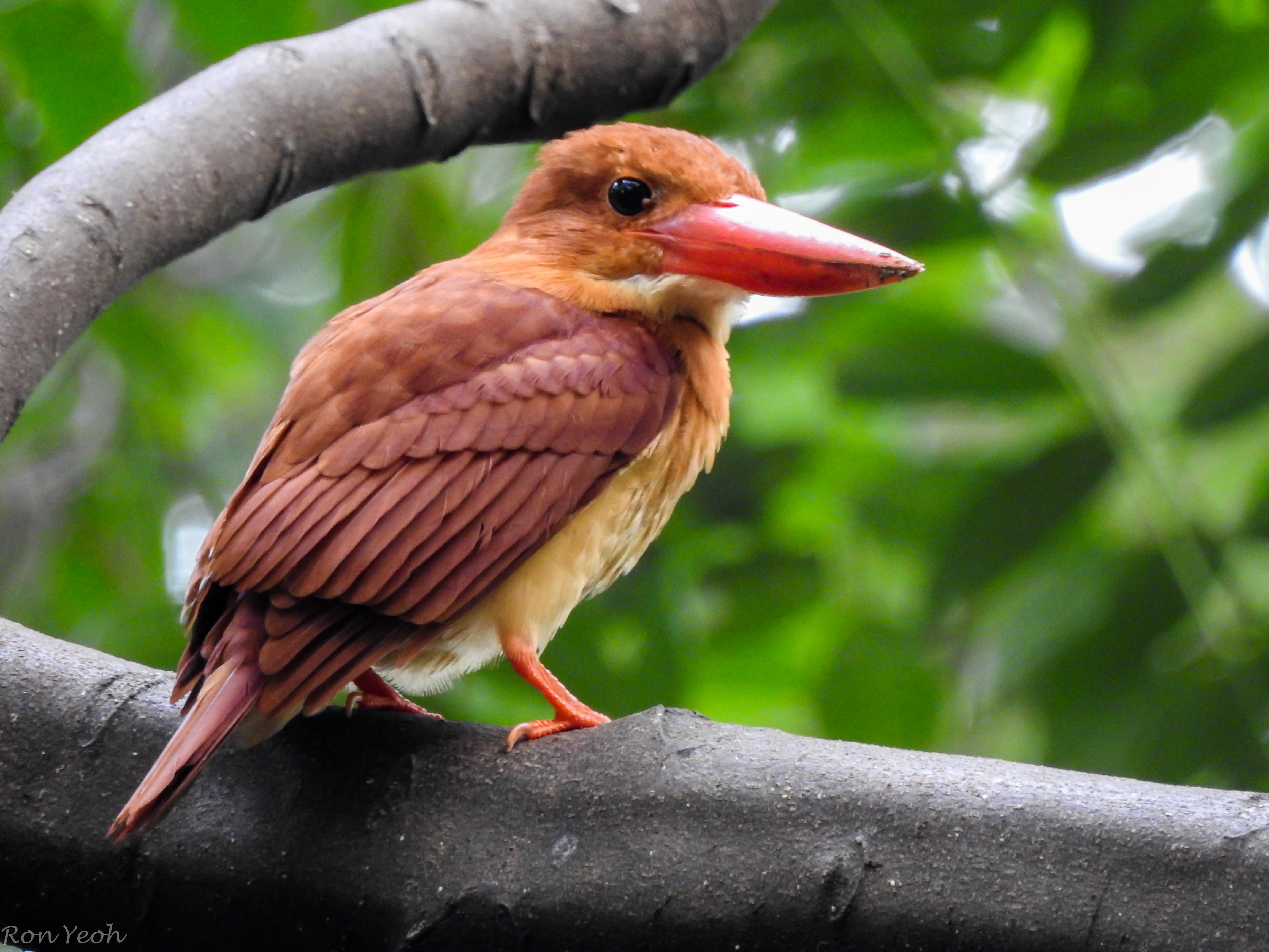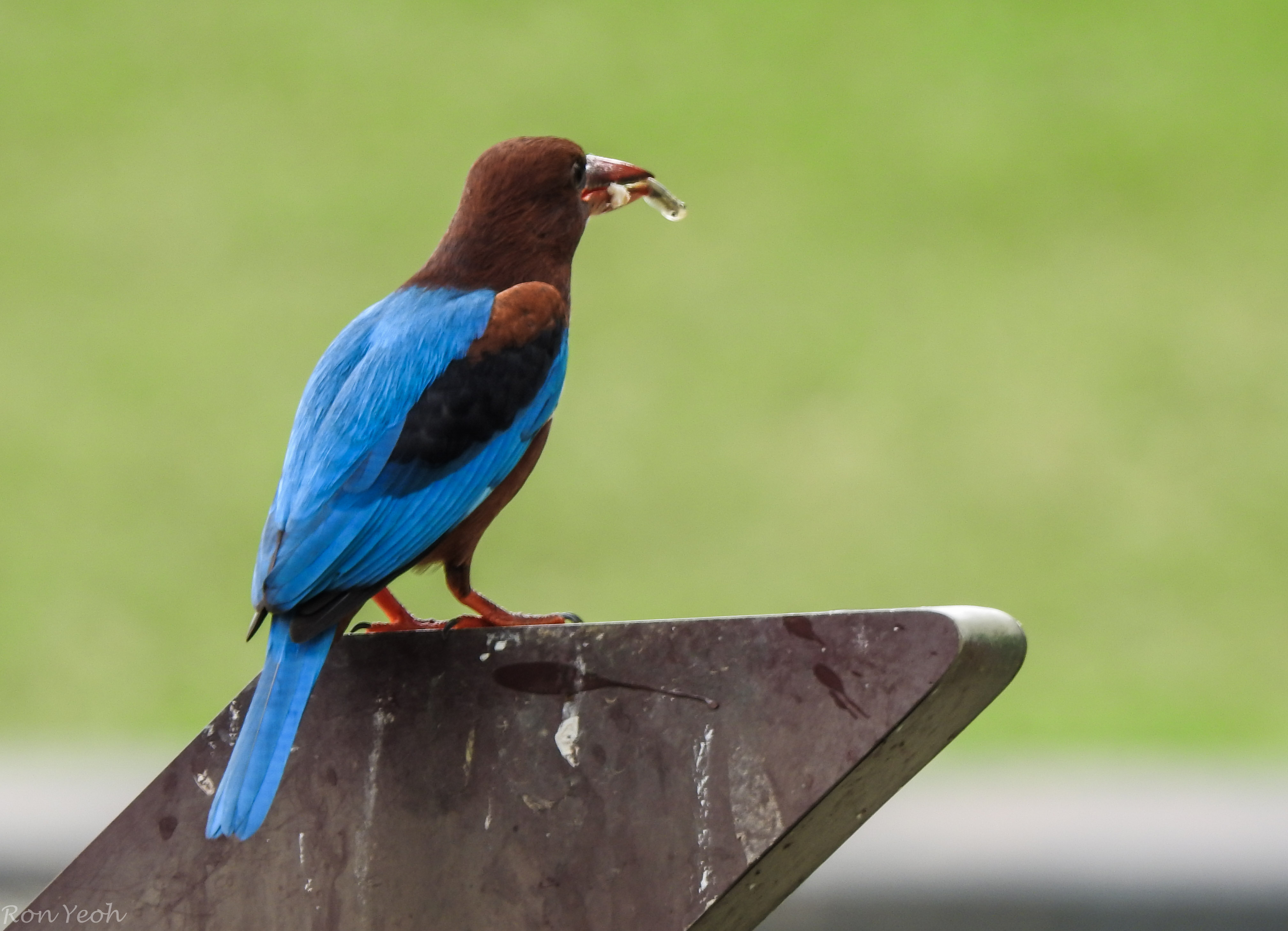 The migrant Ruddy Kingfisher isn’t seen all that commonly in Singapore but many pictures of the one migrant in Bidadari Cemetery by the Singapore birding community led me to try shooting it yesterday afternoon, after the rains had cleared. Hearing that it was hanging out near the Bartley MRT and Maris Stella school area, I parked in the Jalan Rindu area and crossed the road to the forested area of Bidadari….soon I spotted a small group of photographers around a few trees…and sure enough the Ruddy Kingfisher was perched prettily posing for us…..after about ten minutes, it swooped down to the ground and picked something up……