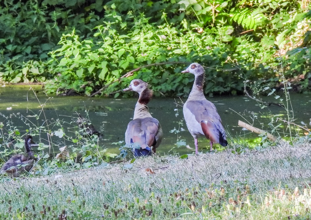the beautiful Schlosshotel Kronberg converted from a palace….surrounded by greenerya hare next to the golf course bade me good morningjuvenile female blackbirds were every where.Viktoriapark….I started at the top left entrance and went down to the two lakes at the bottom right of picture before looping back tot the top left..a beautiful European Robin caught my attentionHe sang away lustily!the splendid red breasted robin or european robinan interesting park benchBy the pond at the top of the map was this pair of Egyptian geese…..I didn’t even notice junior coming into the frame on the leftMum and dad Egyptian geese with their baby….another Robin sang away amongst the hollyand around the bottom lakes, a few grey wagtails flitted aboutgrey wagtail
