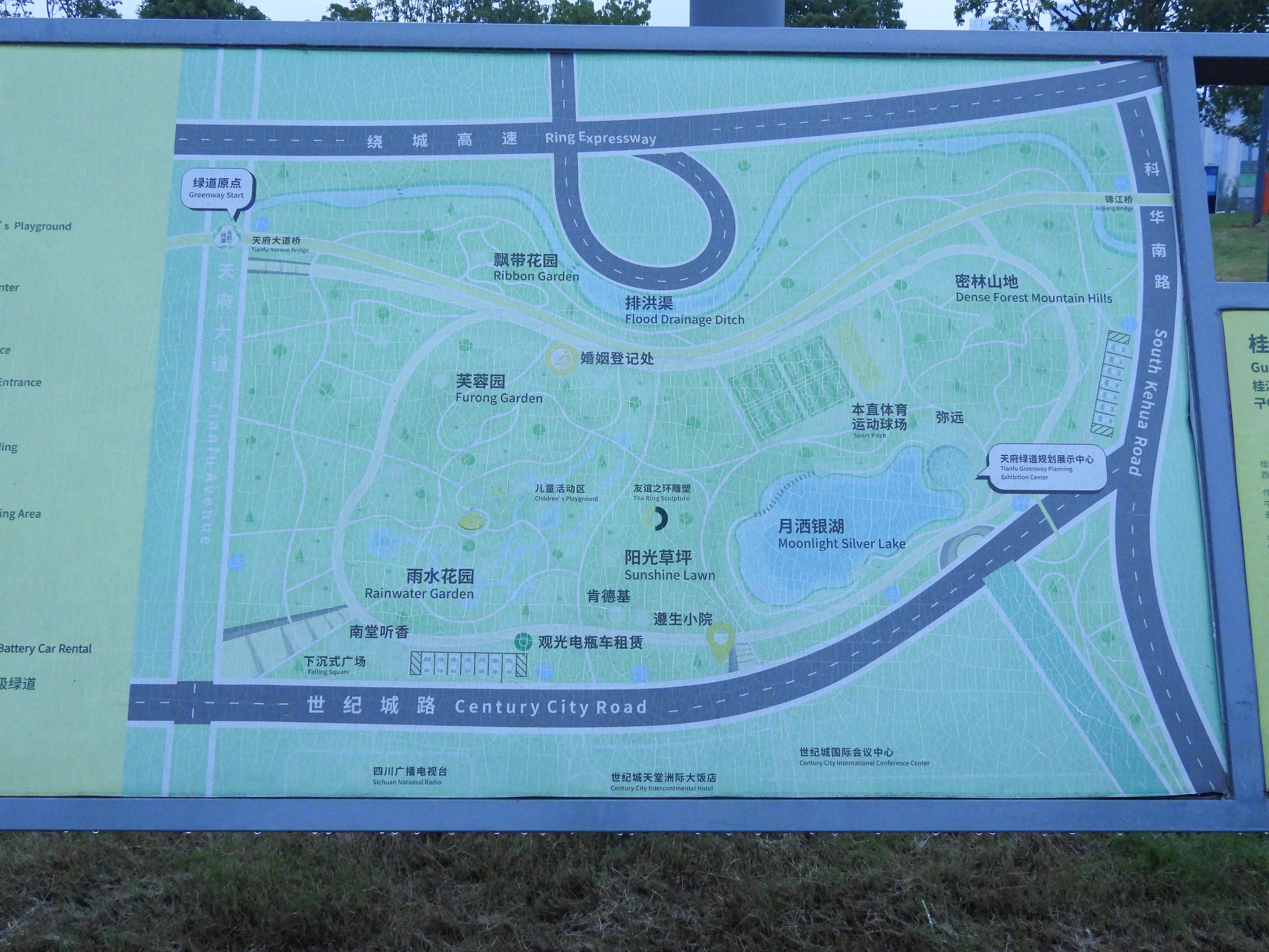 In Chengdu, Szechuan Province, China for a recce visit prior to our conference to be held here next year, we stayed at the Intercontinental Hotel which adjoins the Century City Convention Centre in the southern suburbs of Chengdu, a city of 22 million. Opposite the hotel is the large Guixi Ecological Park, the ‘Central Park’ of Chengdu….Perfect for my usual 630 am walk before meetings start at 9 or 10am.