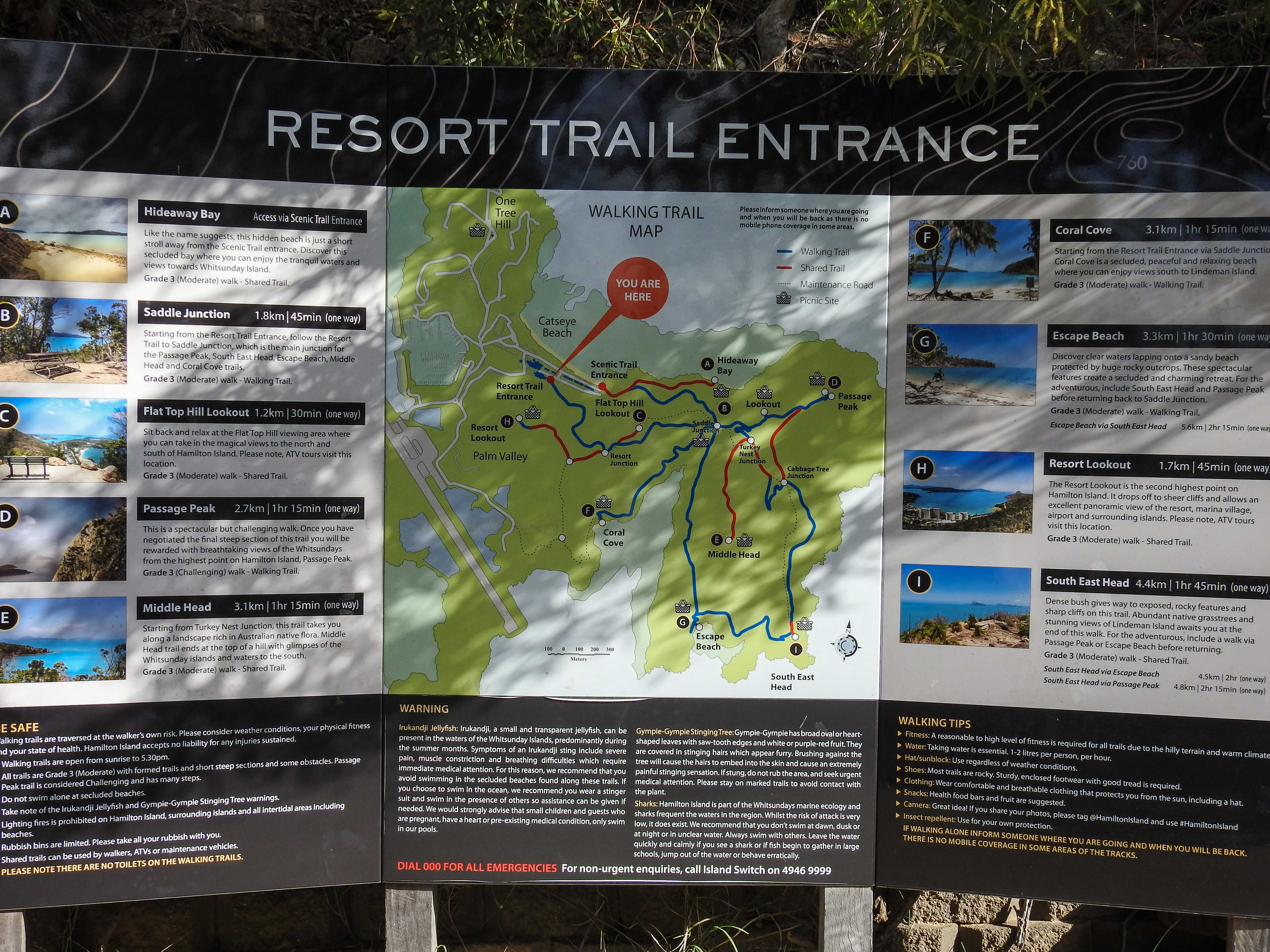 In Hamilton Island for a meeting and the Reef Resort Hotel there is surrounded by trails on the surrounding hills. They’re moderately steep and you have to be careful coming down the gravelly trails….