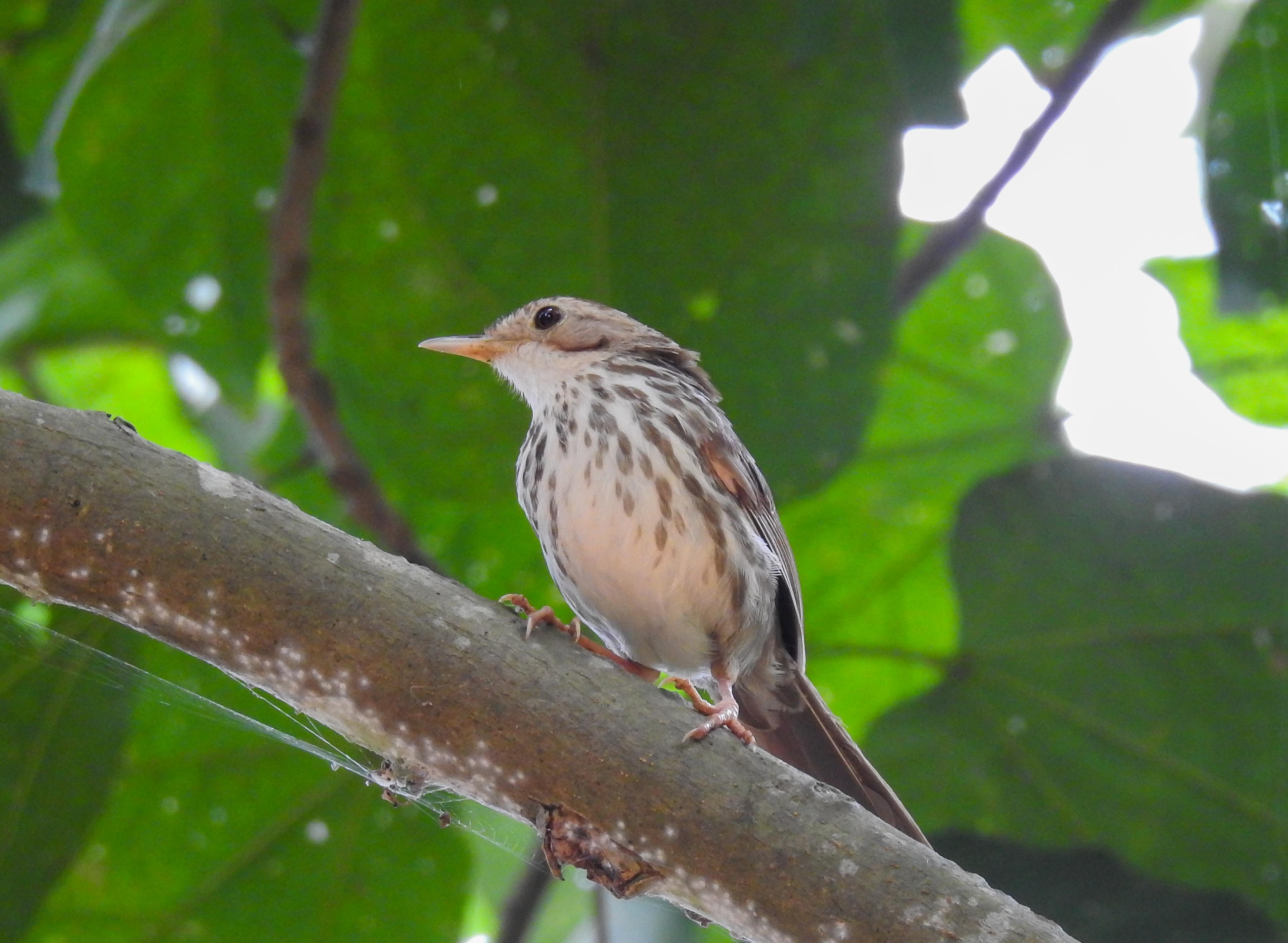 After our water safari on day 2, we spent an hour on the grounds of the Serai resort, walking around the greenery and listening to the bird calls…between our rooms 10 and 11 and the restaurant, I heard this strident 2-3 tone call which Merlin identified as possibly the uncommon Puff throated babbler….