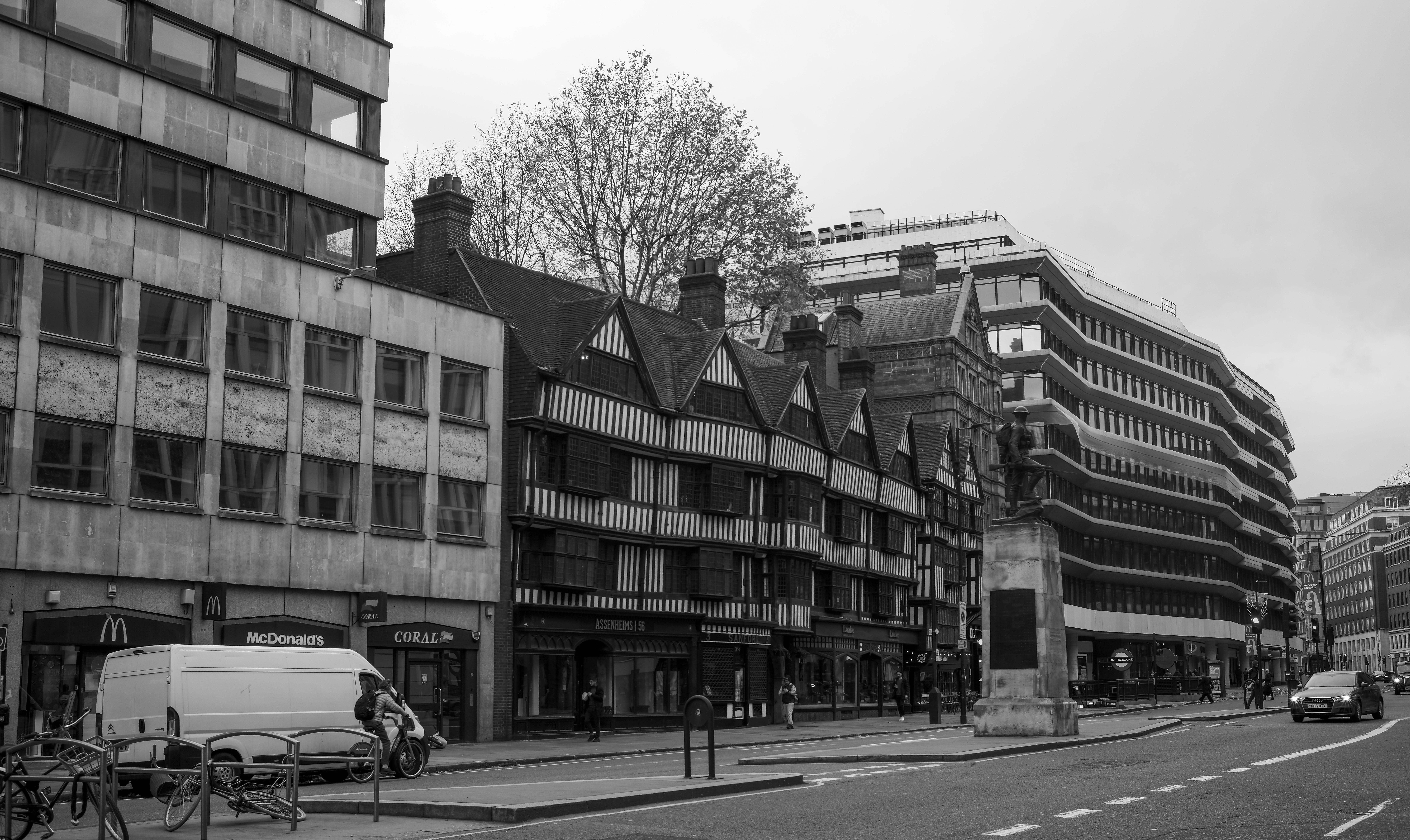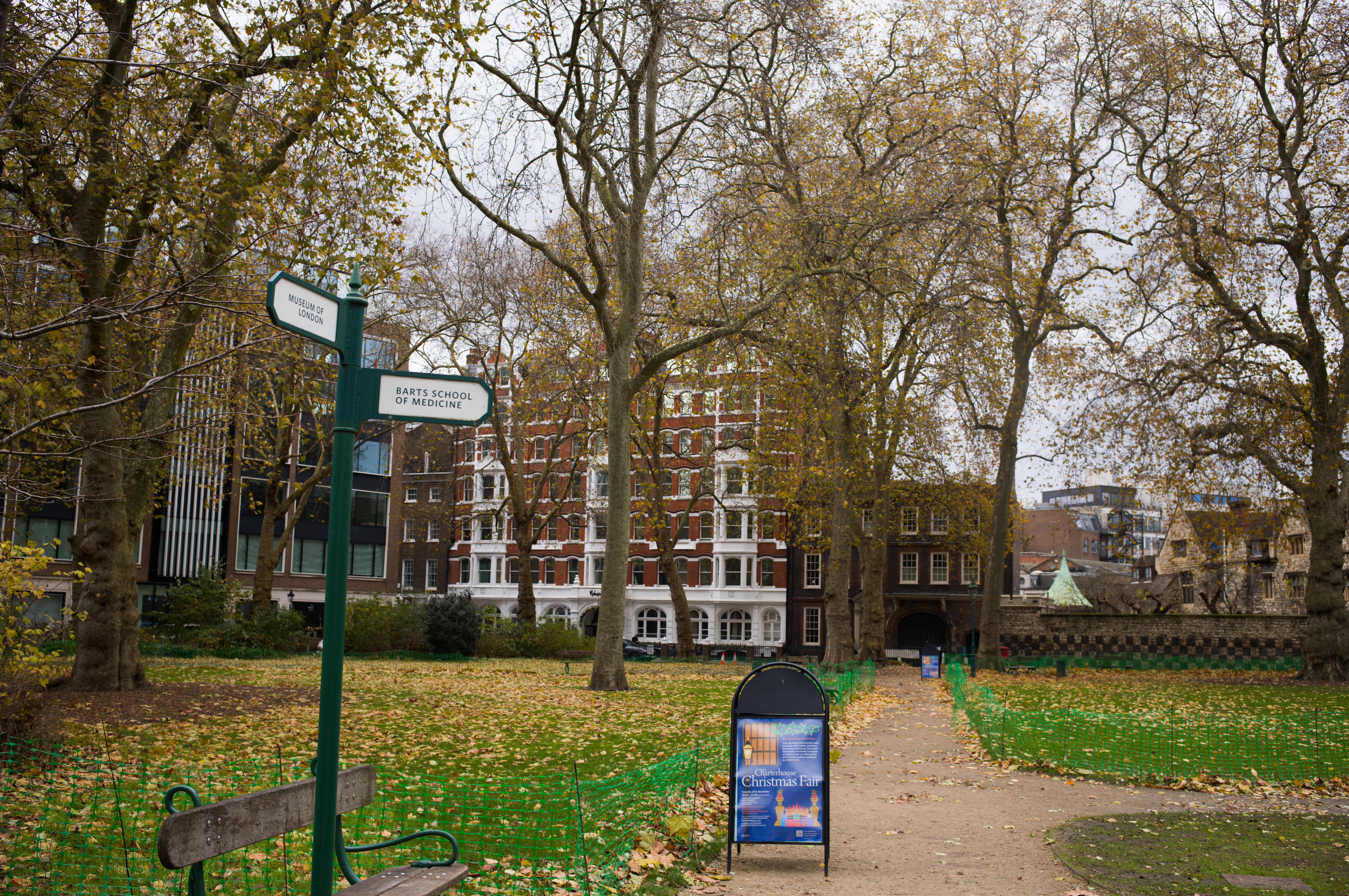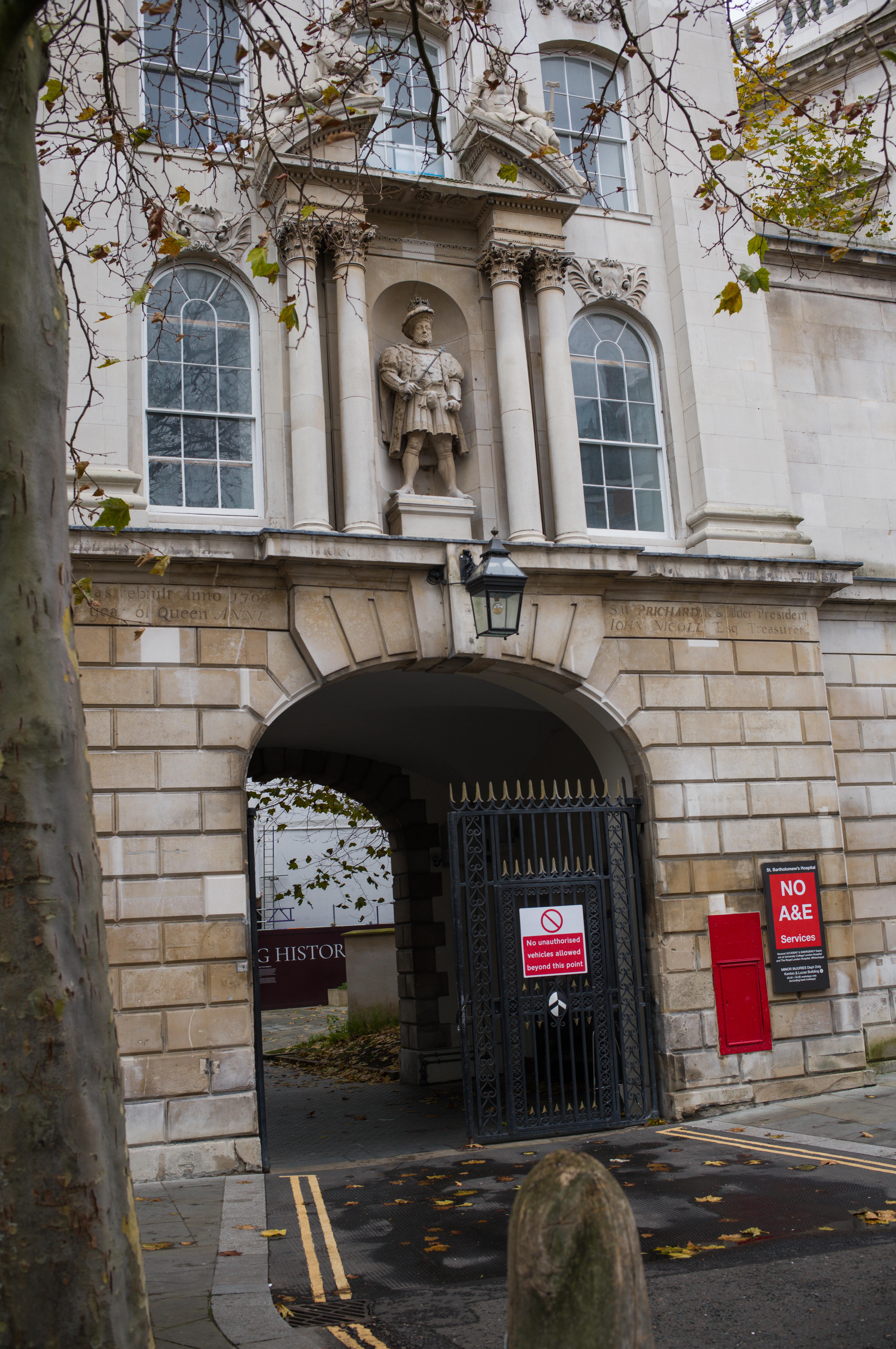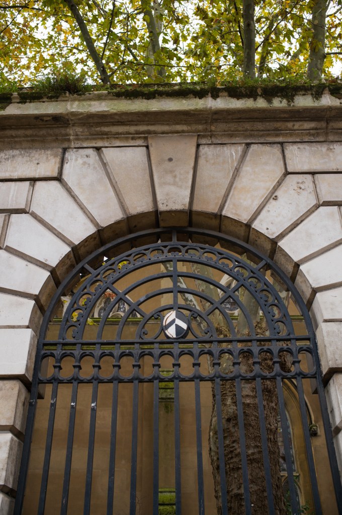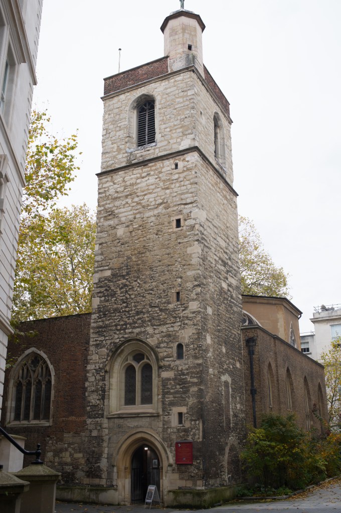 The Leonard Royal Hotel Tower Bridge near Tower Hill tube stationBut a few minutes away, Tower Bridge and the Tower of London on a cold gloomy London morning…I walked up Minories to have a look at Petticoat Lane, once very well known, but it is actually very tacky and not worth visiting today….The Shard loomed in the distanceand I had a most agreeable sausage sandwich and cappucino at Pete’s Cafe opposite Aldgate Station….The City of LondonThe Gherkin peeped out between the buildings near petticoat laneI walked along London Wall to LIttle Britain and West Smithfield….roads I had known only too well all those years agoFinally arriving at the Olde School, St Bartholomew’s Hospital, founded in 1123…this of course is a newer wing that wasn’t there 40 years agothe distinctive black and white crest of BartsKing Henry VIII gateway at the main entrance….through which is the Church of St Bartholomew the Lessand the beautiful square of the hospital….thankfully whilst there has been development, some of the old buildings remainoutside…. a memorial to William WallaceSt Bartholomew the Great ChurchSmithfield Meat Market…I remember when I first walked through it on my way to St Bartholomew’s Hospital…there were lots of men dressed in bloodied white overalls…I thought they weren’t very good surgeons at Barts! Of course they were the butchers of Smithfield meat market, soon to be converted to a museum…someone saw fit to paint the gates within the meat market this garish green and purple colourCharterhouse Square…where preclinical sessions and the halls of residence were locatedwhere I learnt anatomy 40 years ago….overlooking charterhouse square is this block of flats where Hercules Poirot of Agatha Christie fame is supposed to have stayedwe were taken on a tour of the City of London looking at historical medical sites…here of course is St Paul’s Cathedral, surrounded by many guild houses and worshipful companiesI then wandered past Hatton Garden and down Holborn where the gusty winds of Storm Bert were throwing up the autumn leavesOne of the endearing charms of London is that the old juxtaposes with the new ..a wonderful study in contrastsAnd so my walk from Tower Hill to Shaftesbury Avenue ended …