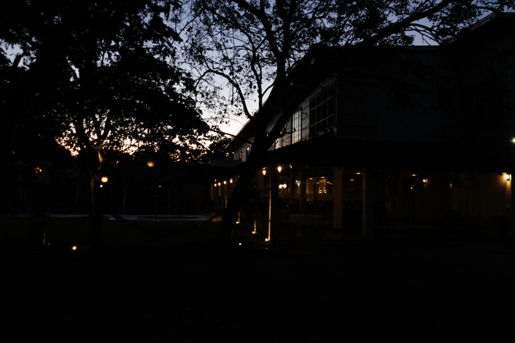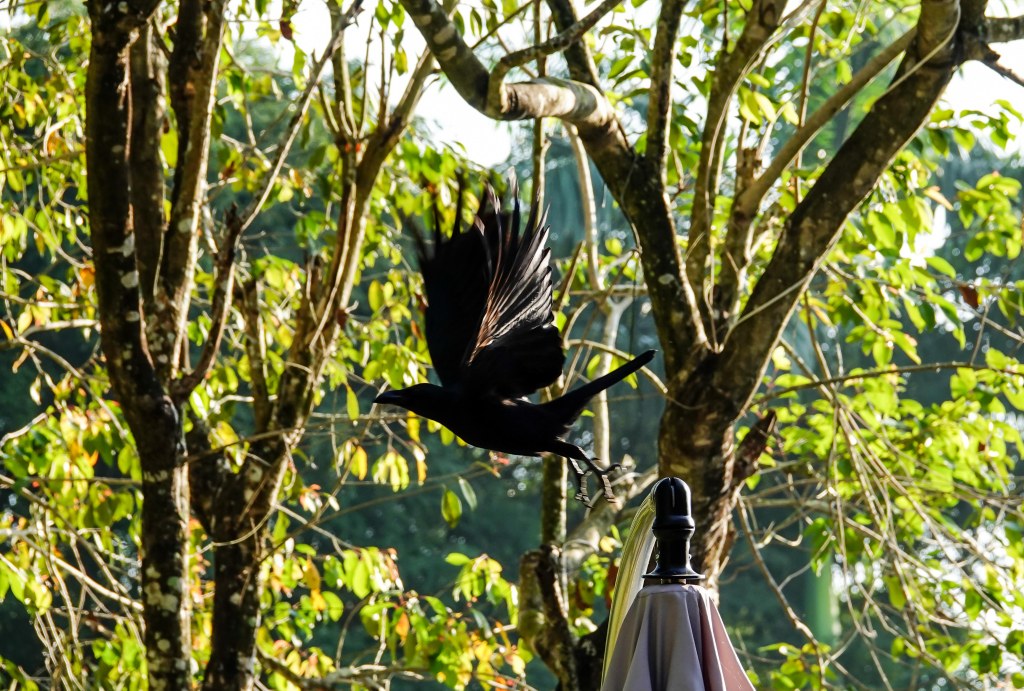 After the elation of seeing the SSO, it would be difficult for the rest of the afternoon to match it. We checked into the rather nice Forest Edge Resort which is up a rocky bumpy road and had lunch. The dining room backs onto some greenery…