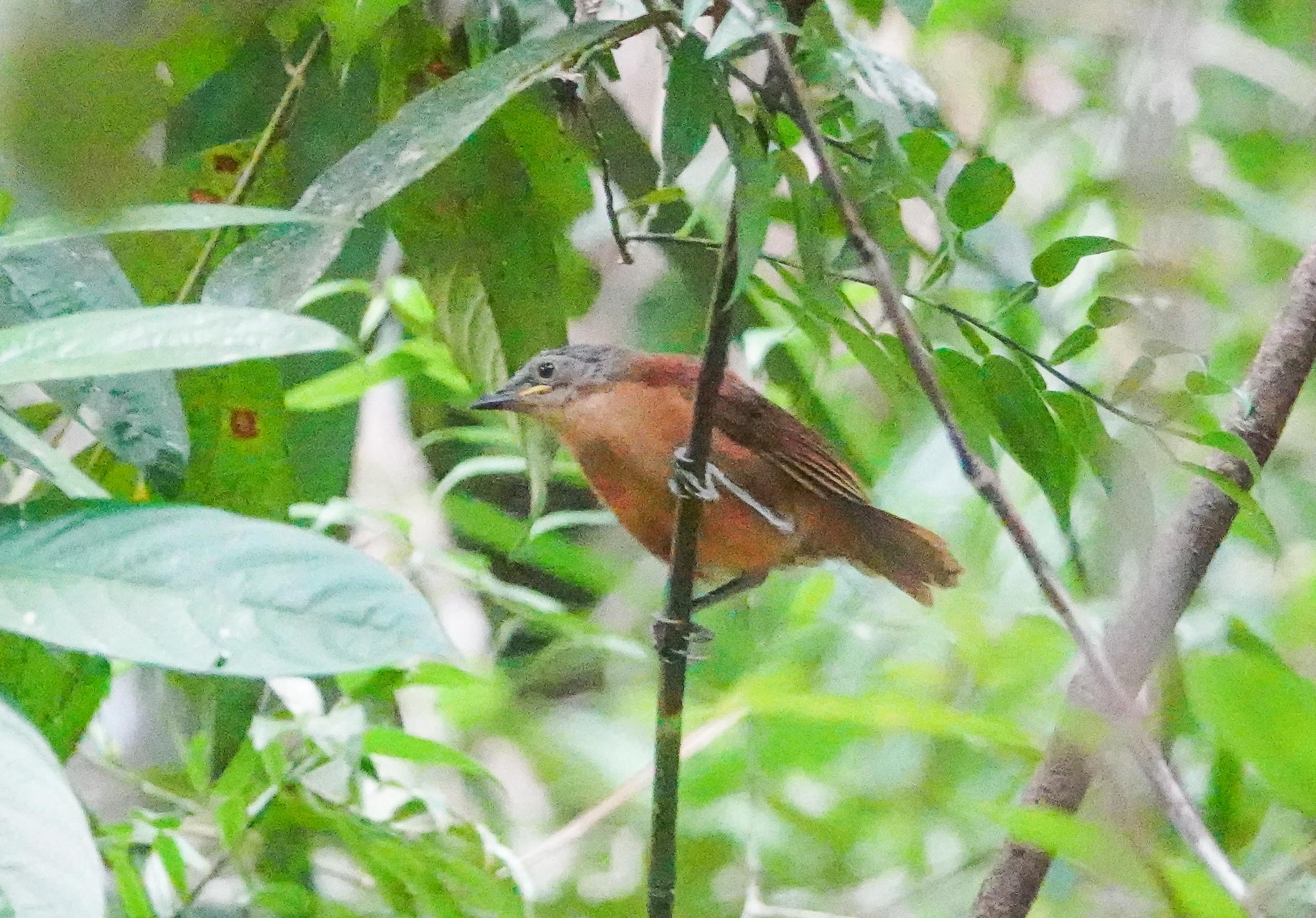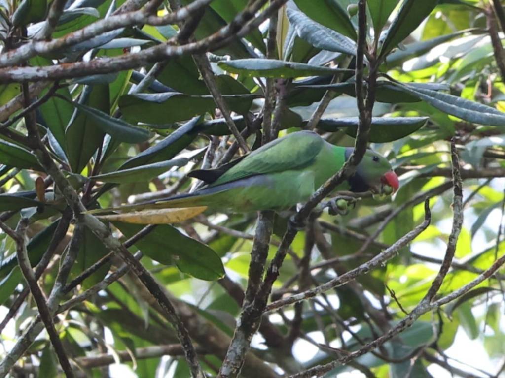 As we neared Sinharaja for lunch, Nila said he had a surprise for us…..the van pulled into a little track and he led us up a narrow hilly trail and a local birding expert Ranjit pointed to a copse….