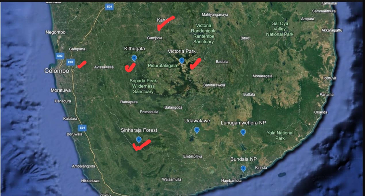 Our planned route was to overnight at the nearby Covanro Hotel, just 20 min from the airport as we landed late. Then it would be on to Sinharaja, Kithulgala, Nuwara Eliya (pronounced Nuraliya by the locals!), Kandy and then back to the airport. Largely centered on the wetlands and montane region….