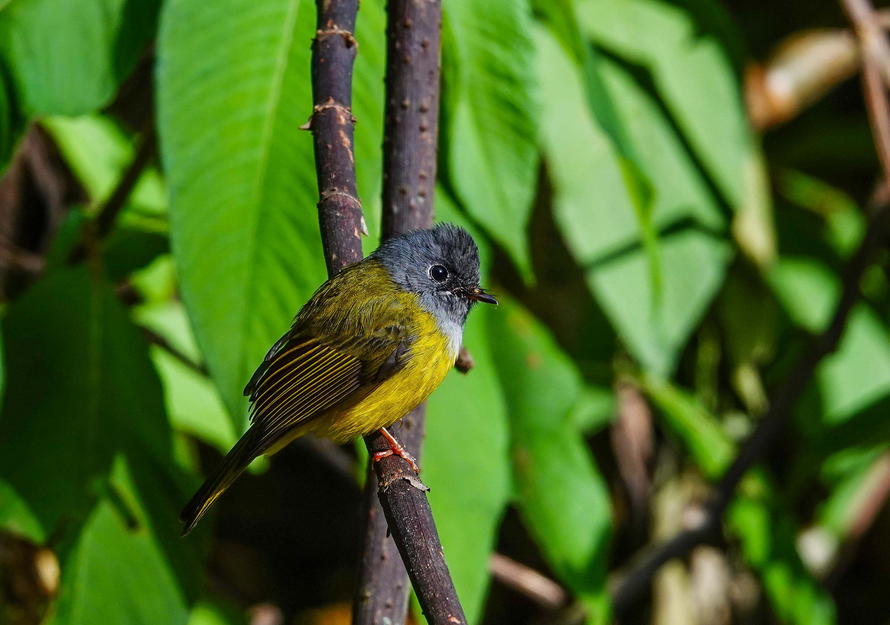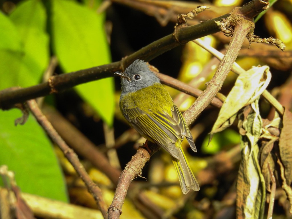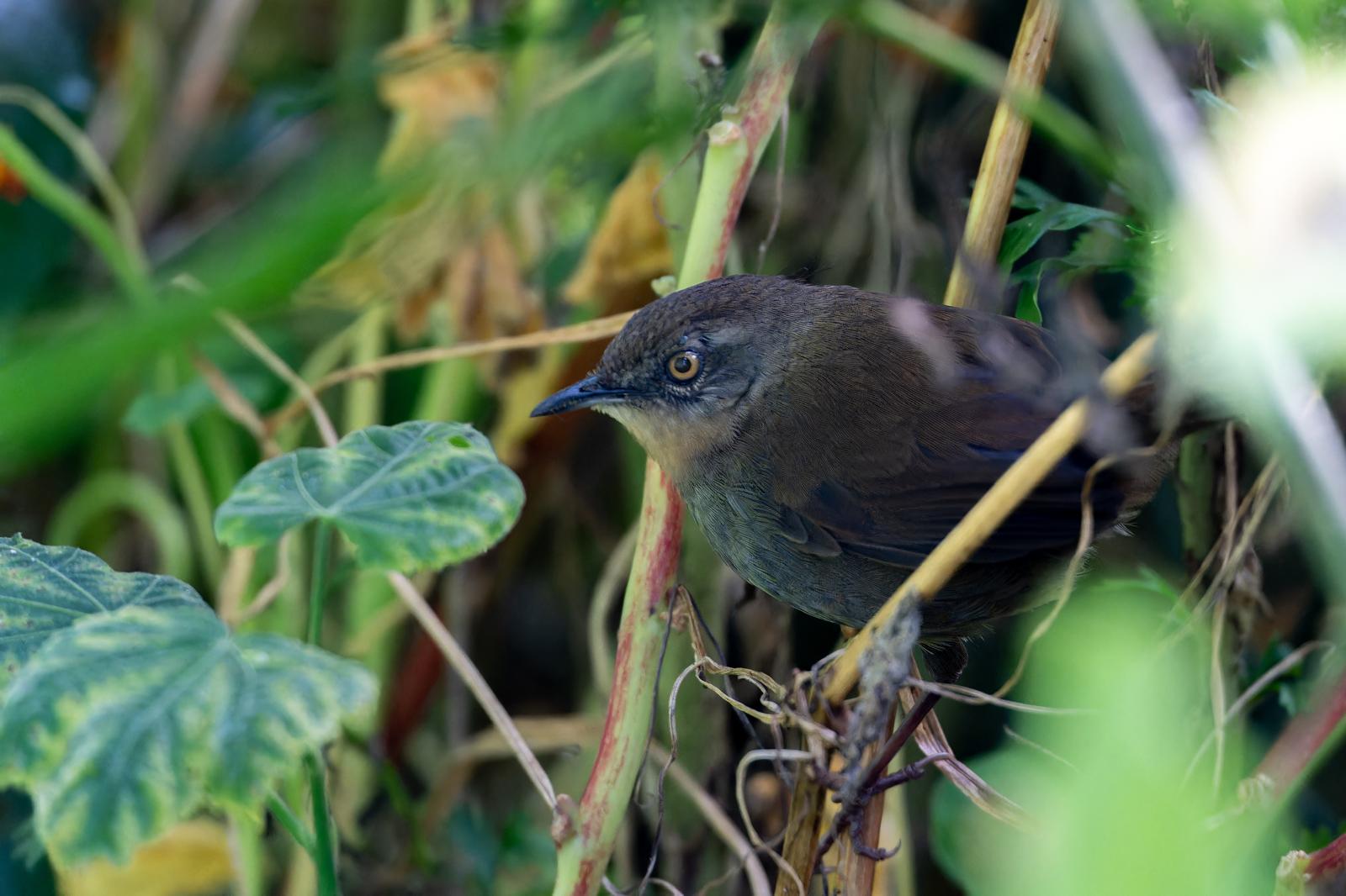 Sri Lankan Bush Warbler! (E29) poked its head out briefly…between 4 cameras and many many shots…this was the only shot that was good! (Picture courtesy of H Tan)..Indeed though we heard the bush warbler in several other locations, it was never seen again!whilst waiting for the bush warbler, some friendly grey headed canary flycatchers entertained usgrey headed canary flycatcher