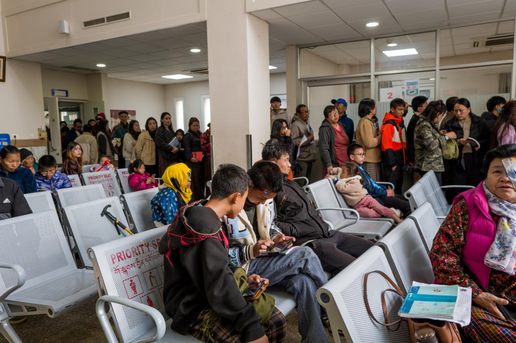 the approach into paro is always magical with the mountains on either side welcoming usThe clock tower …the main town square next to the Druk Hotel..which is the mauve building on the right…the rooms are fine but they are painted in the same dark mauve colour so are somewhat dark…the WangChhu is beautiful as alwaysThe eye camp was conducted at the national eye centre in thimphuwhere about a hundred patients had their cataract surgeriescataract surgery in progressa happy and grateful patient