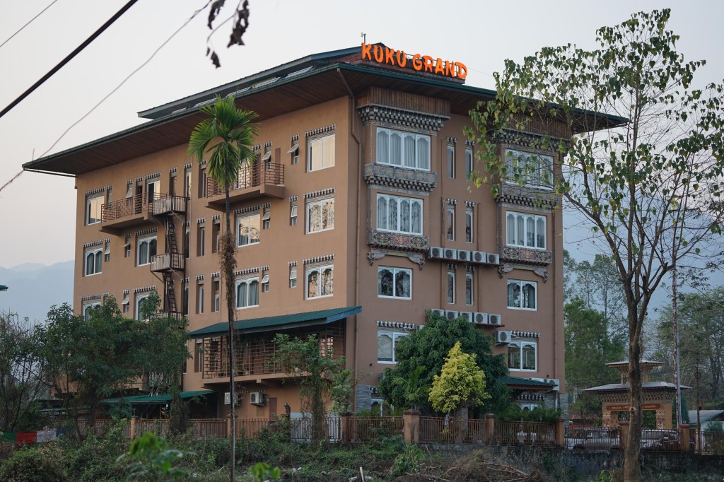 After our teaching workshop and surgeries in the national referral hospitaln in Thimphu, our next community cataract surgery program was way down in south Bhutan, at a town called Gelephu on the border with Assam, India. Although only 250km away, the road was a long winding twisting road leading out of the mountains of Thimphu, pass Punakha and the Himalayan range towards Tsirang and down into the plains of Sarpang and Gelephu….it only took 8 hours with an hour stop for lunch in Tsirang at the Damphu resort….