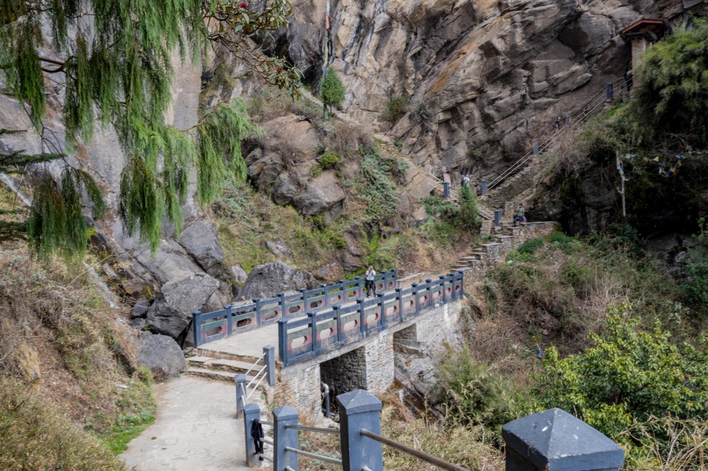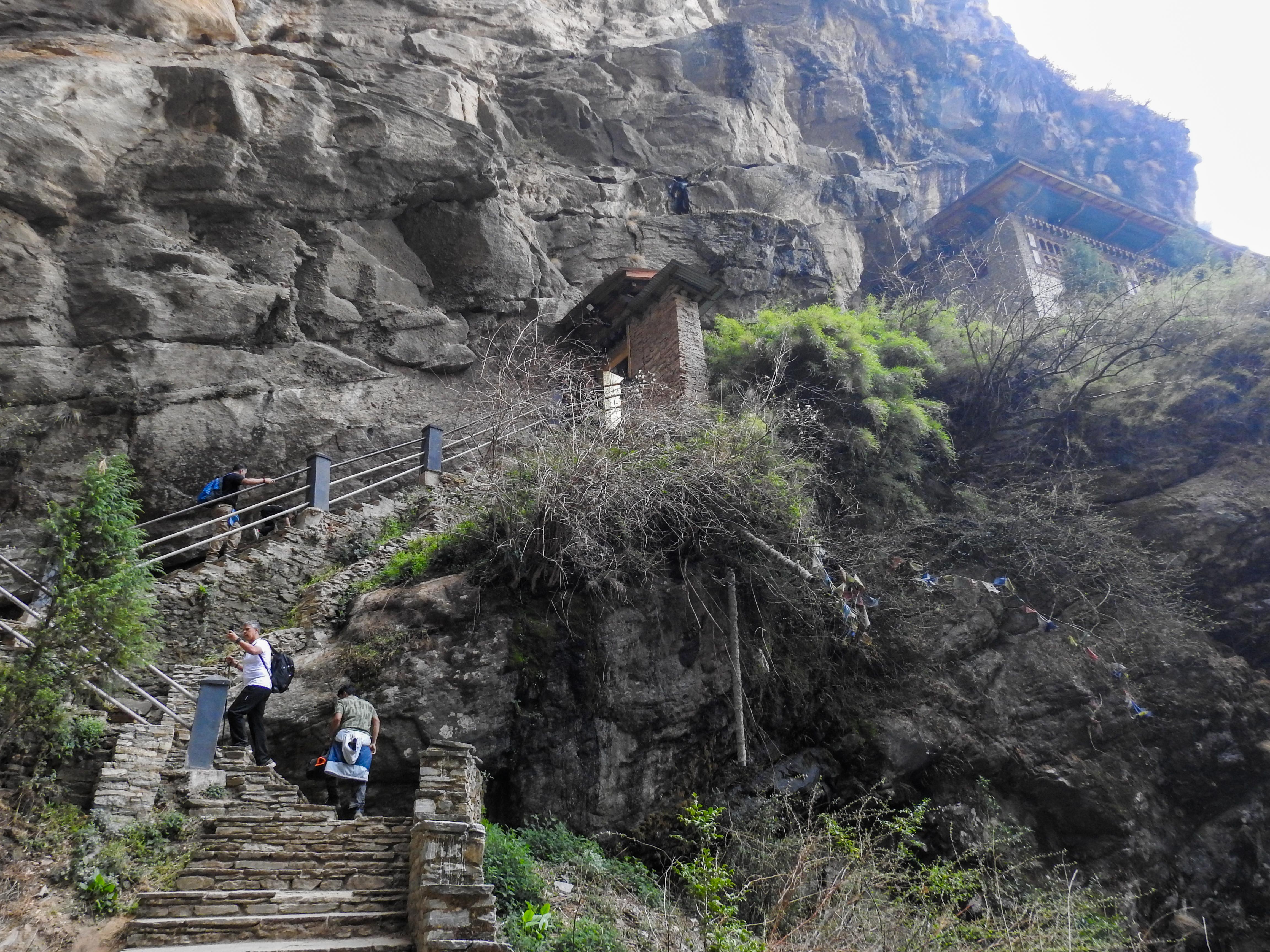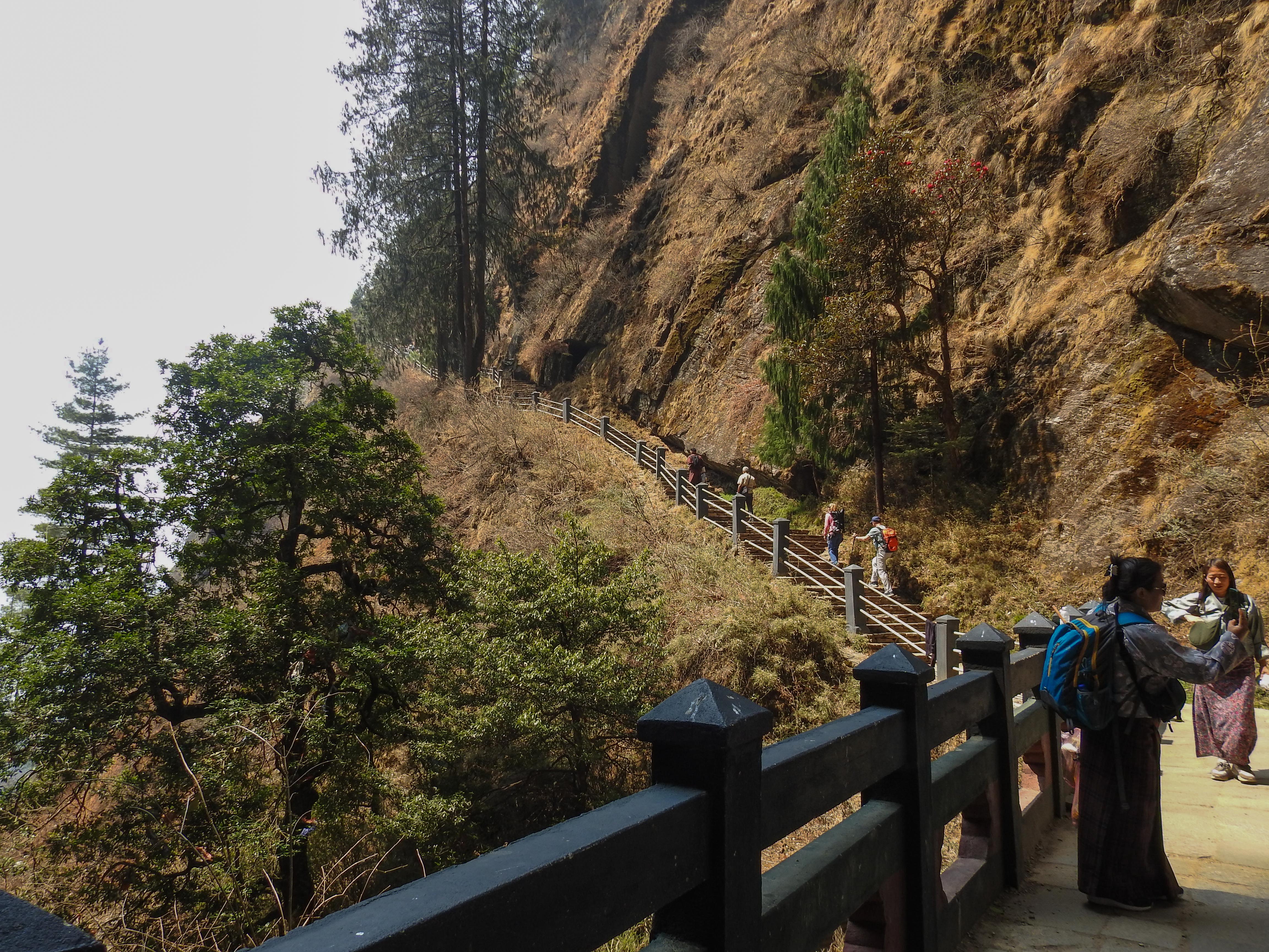 so near and yet so far….taktsang beckoning..here you see the stone steps leading up to the monastery…high steps…and many steps! This was probably the toughest part…it was steep, it was long…it took us about half an hour to go up these steps….