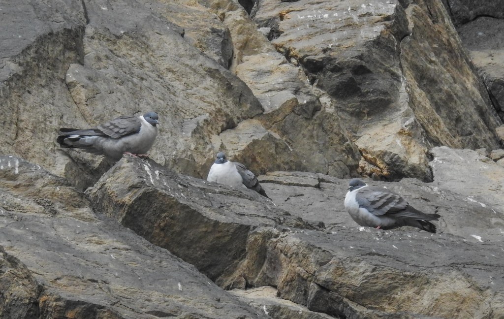 some snow pigeons rested above the falls