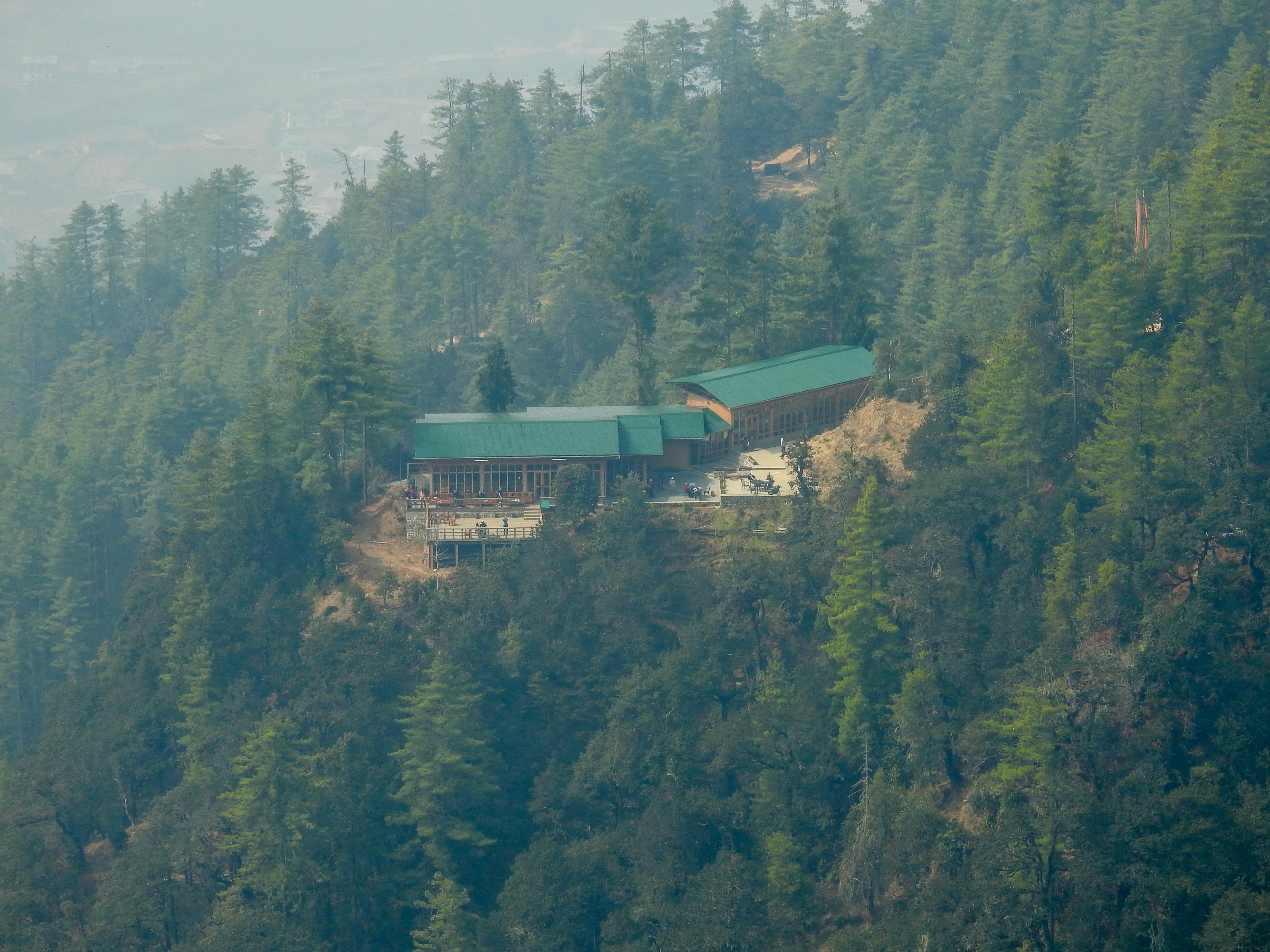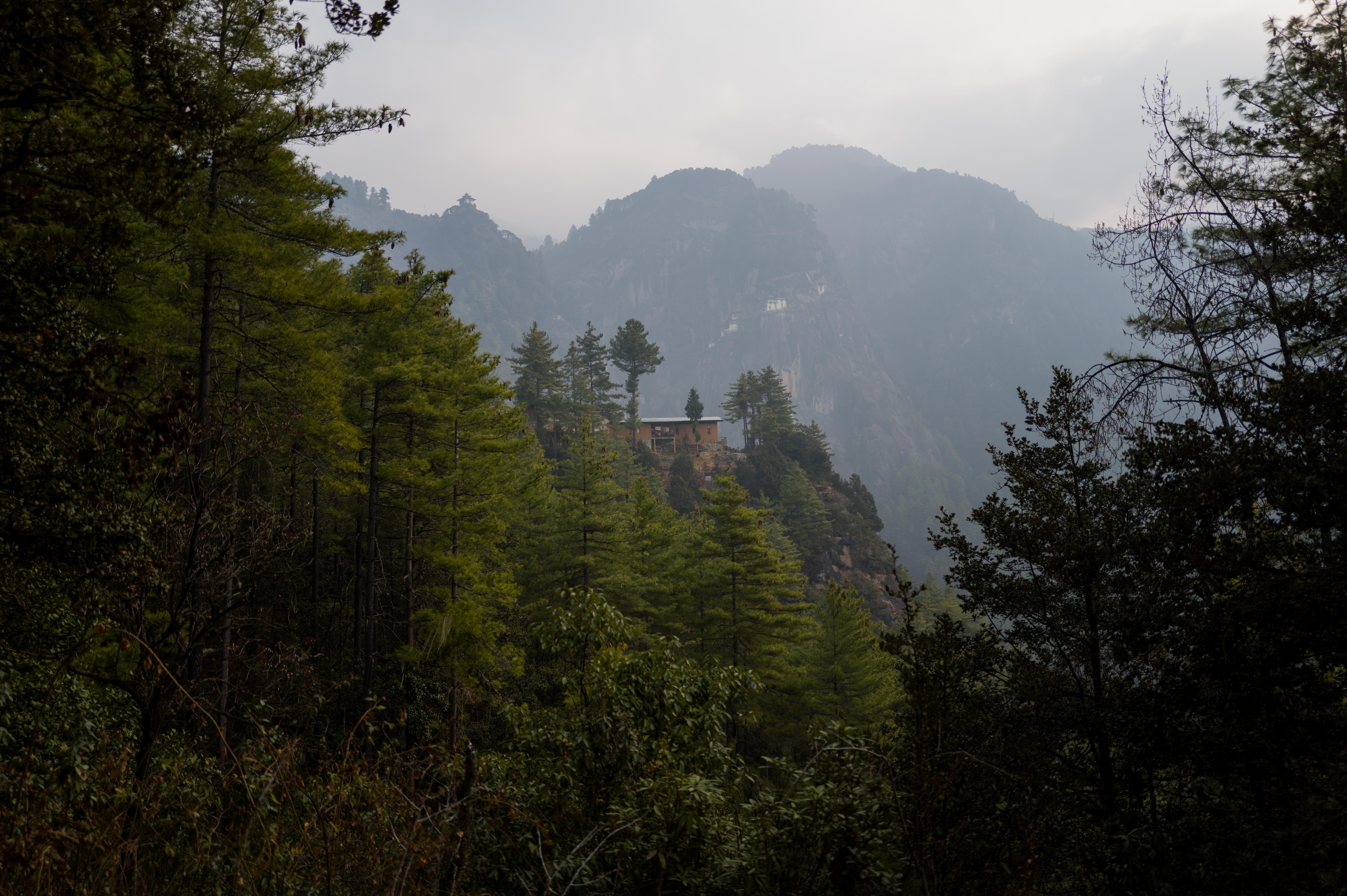 this was our first reasonable view of Taktsang across the valley from the cafetaria..unfortunately the mist and smoke from nearby forest fires made the view murky