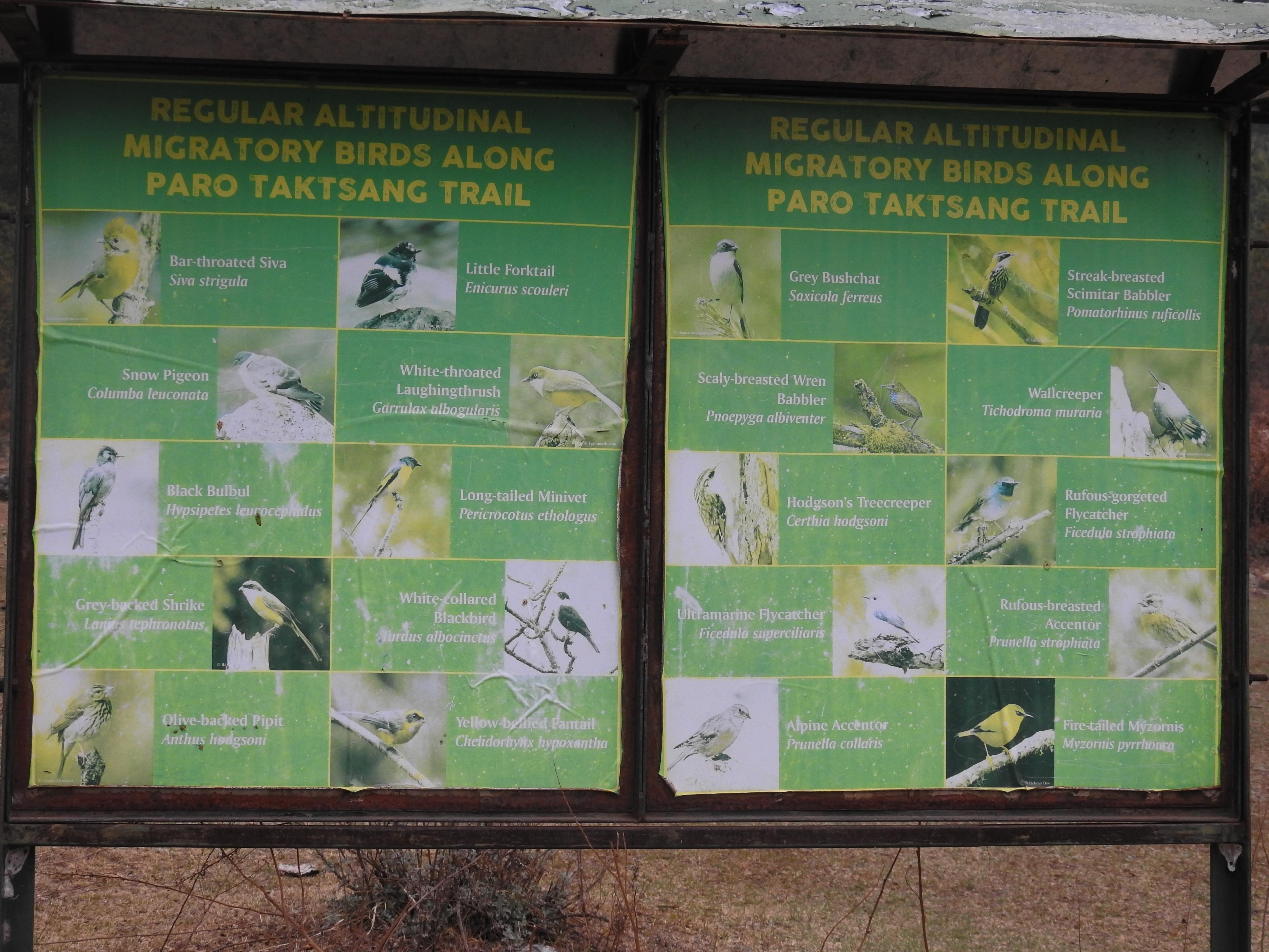 my bird guide Sonam Dorji had told me that the climb was in coniferous forest and that the birding was not very good….but this sign suggested otherwise…and we did see a reasonable number of birds which made the climb more interesting