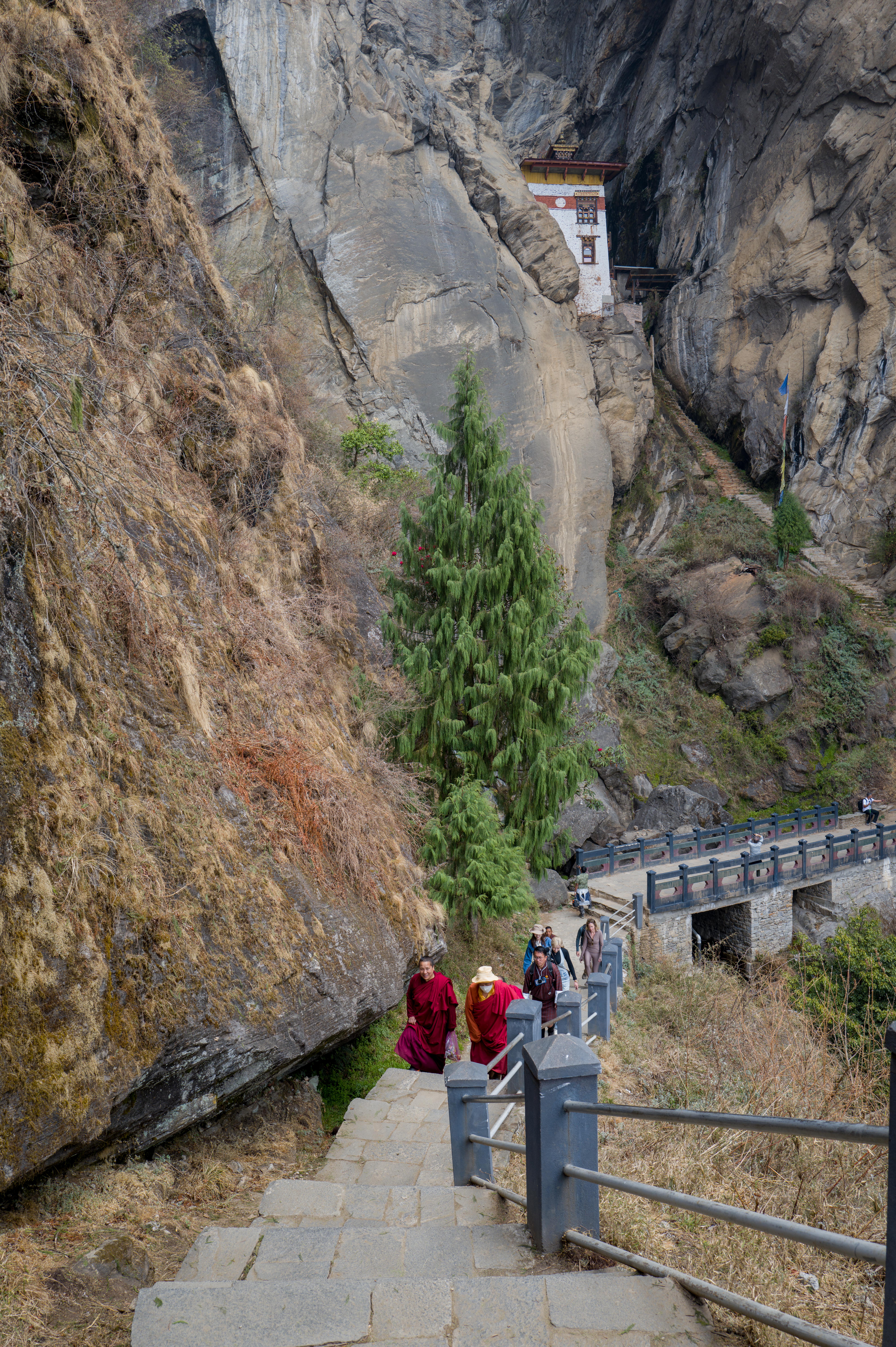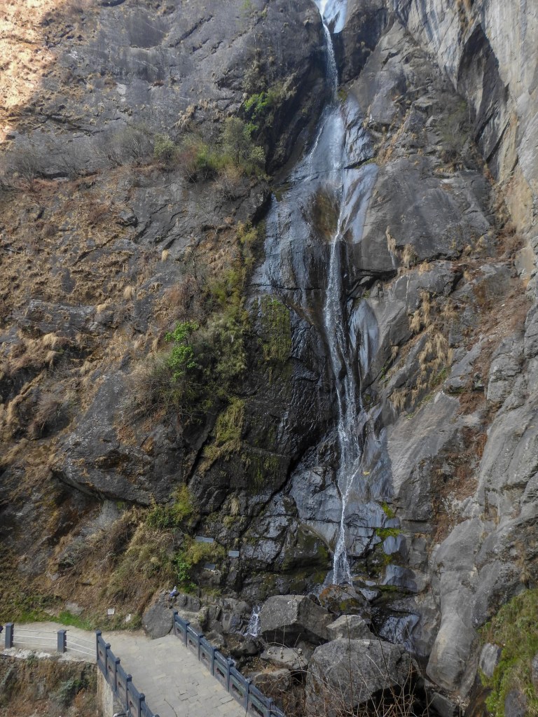 Just as we felt that we’d done it, our guide said let’s go to the monastery…you can see the staircase leading down from this viewpoint….this is arguably the most challenging part of the climb…this concrete stairway is steep with big steps and goes all the way down to a bridge at the foot of a waterfall…..and then you have to climb all the way back up to the monastery on another steep stairway…..