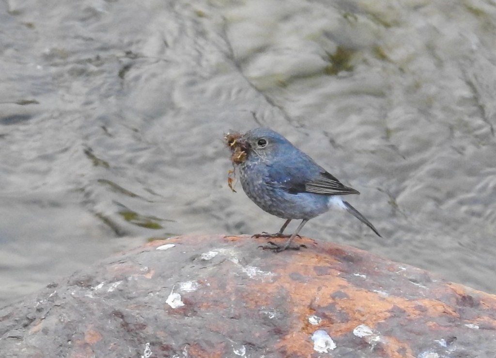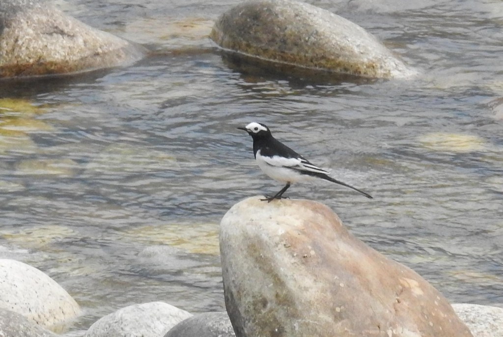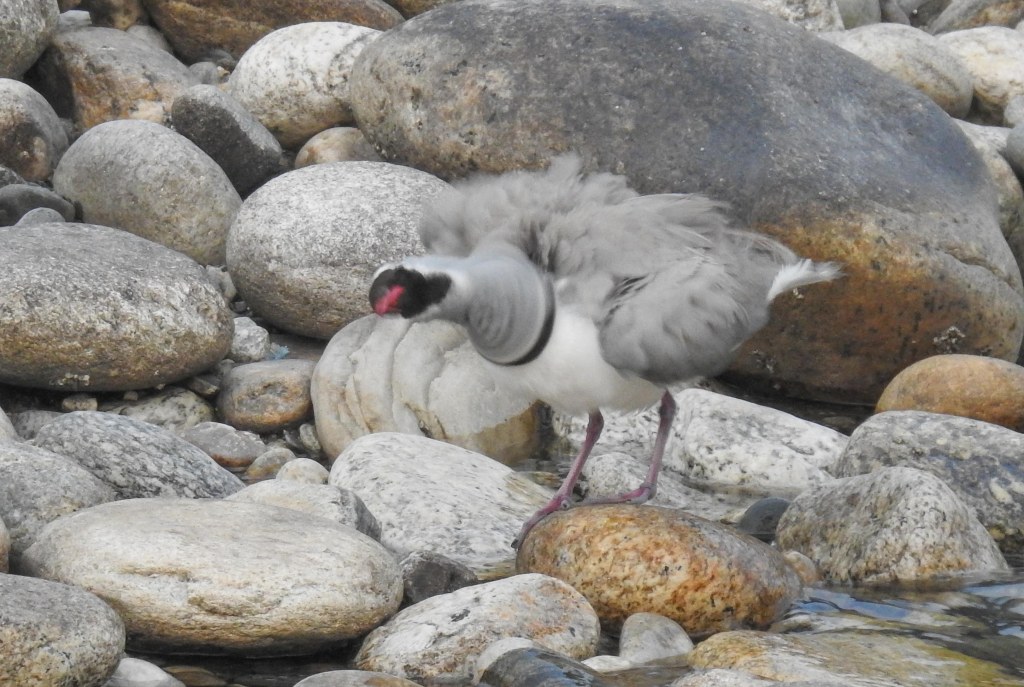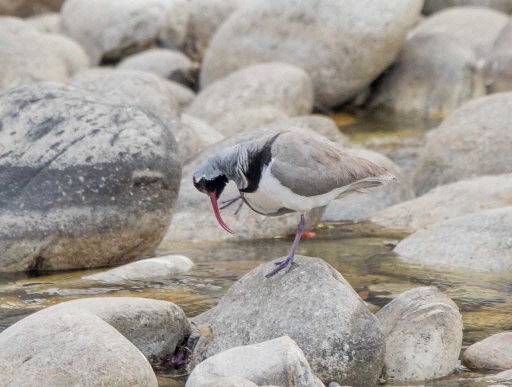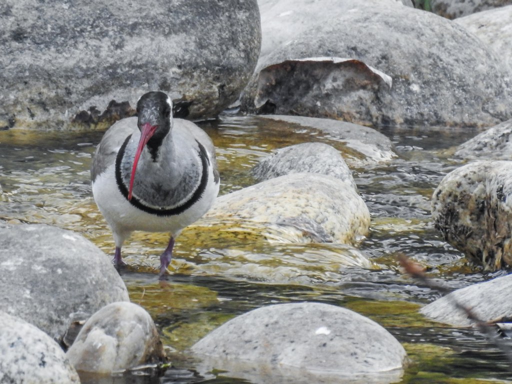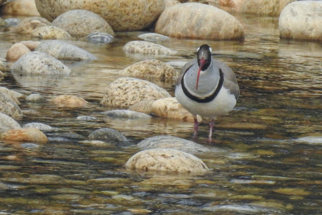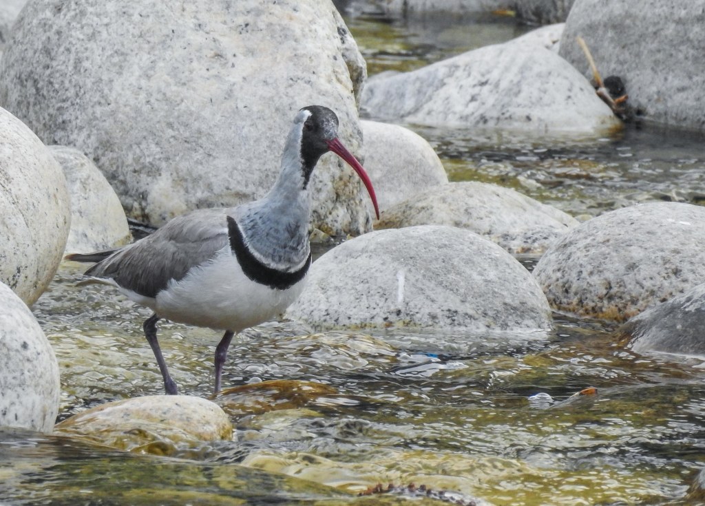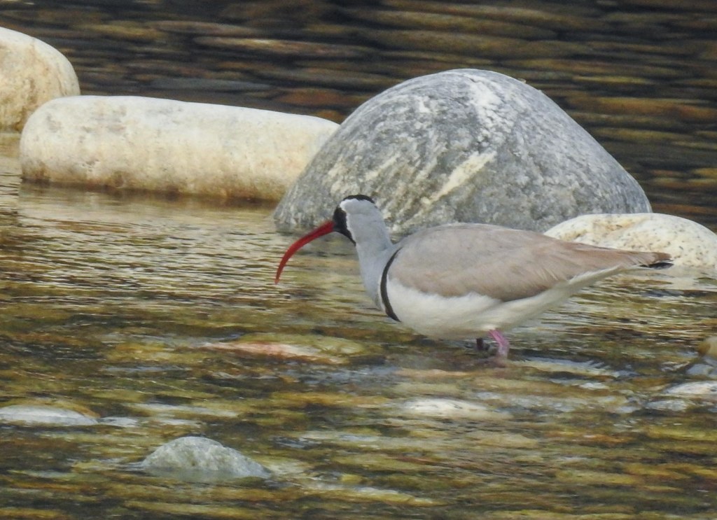 After a few minutes it flew off into the distance near the TNR hotel and we moved on..We then headed nearer to Paro town and alighted at the wooden bridge under the Tzhong, the second location with probable Ibisbill settings. This old bridge crosses the Pachu to the side of the TzhongFrom the bridge, a female plumbeous redstart showedas did another brown dipper with breakfastand so we walked away from the bridge away from the town towards a more promising stretch of the riveranother plumbeous water redstart femaleand then amongst the rocks, another familiar red curved bill appeared He foraged a bit then stood a rock to pose…note the purple legs!checking the place outscanning the watergiving us great viewsfinally bidding us farewellReturning to our hotel, there was just enough time to walk the river side again…where a river lapwing posedas did a white wagtailand we bade farewell to Bhutan after a fulfilling 12 day stay