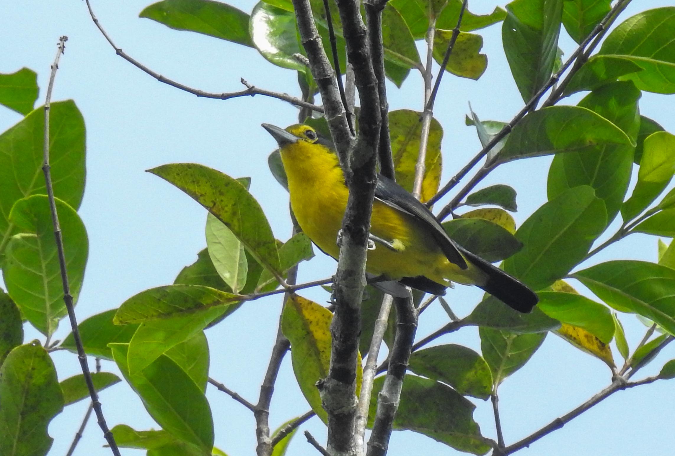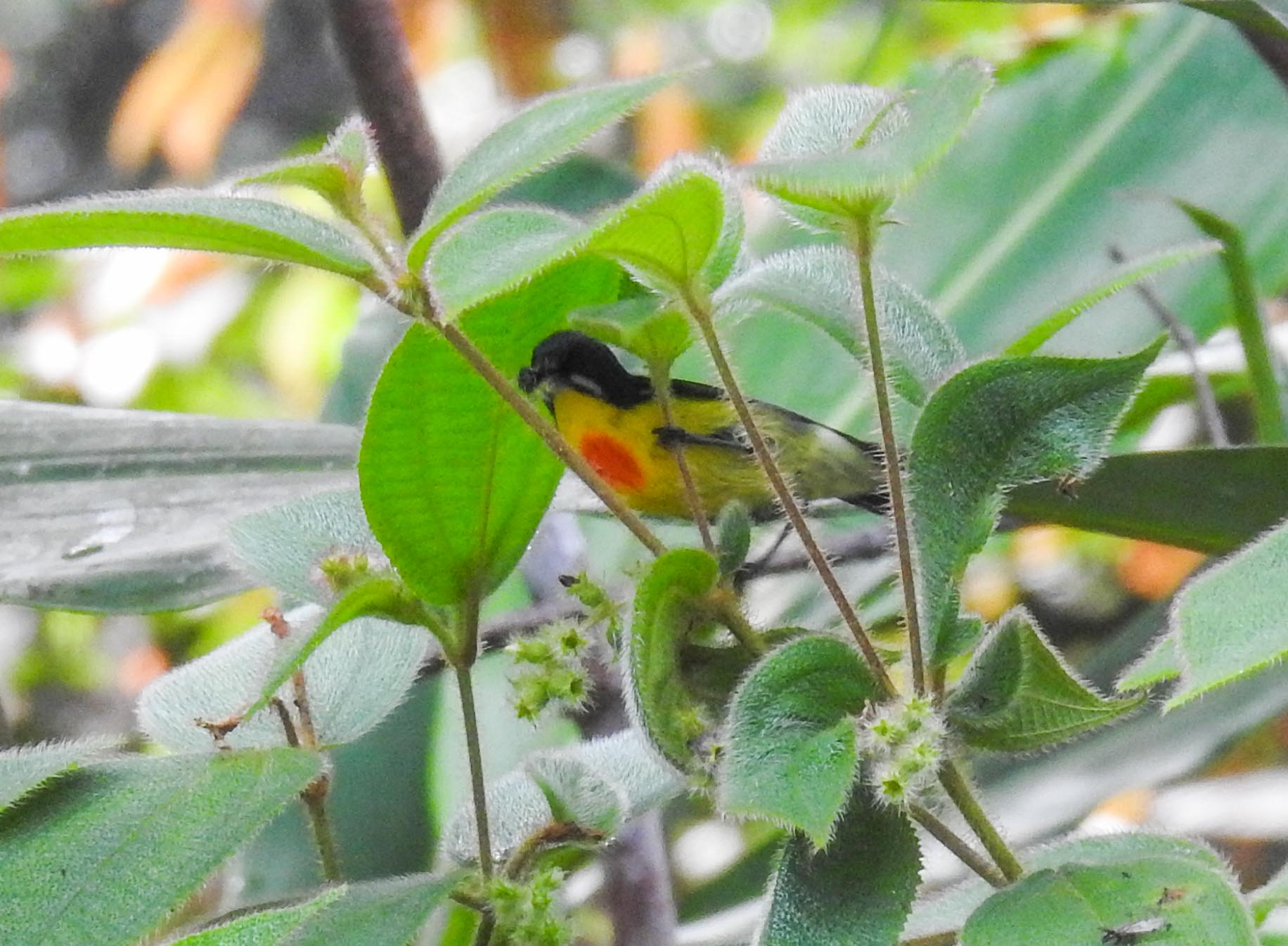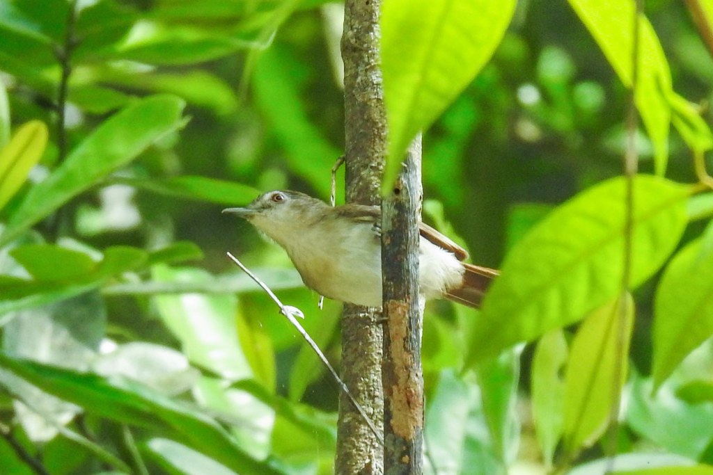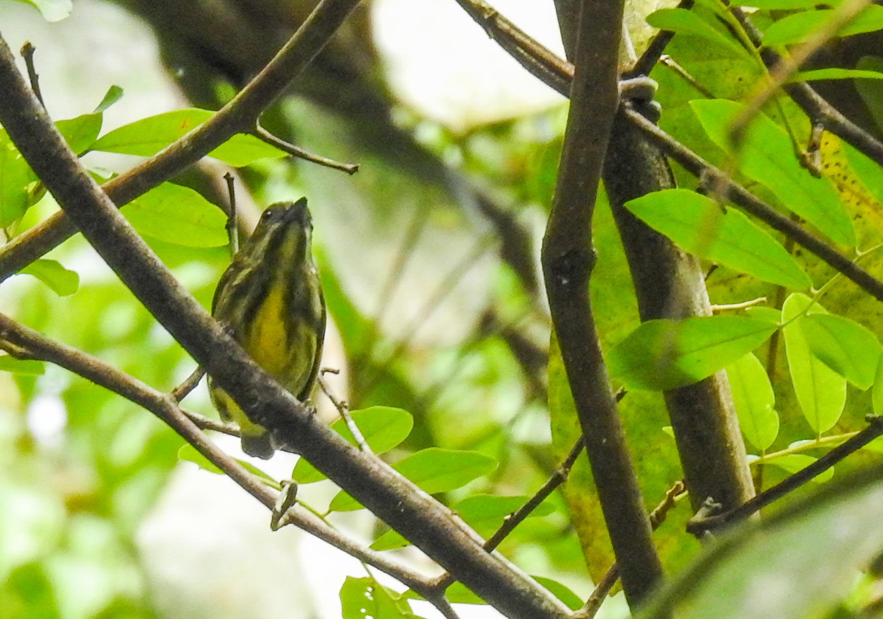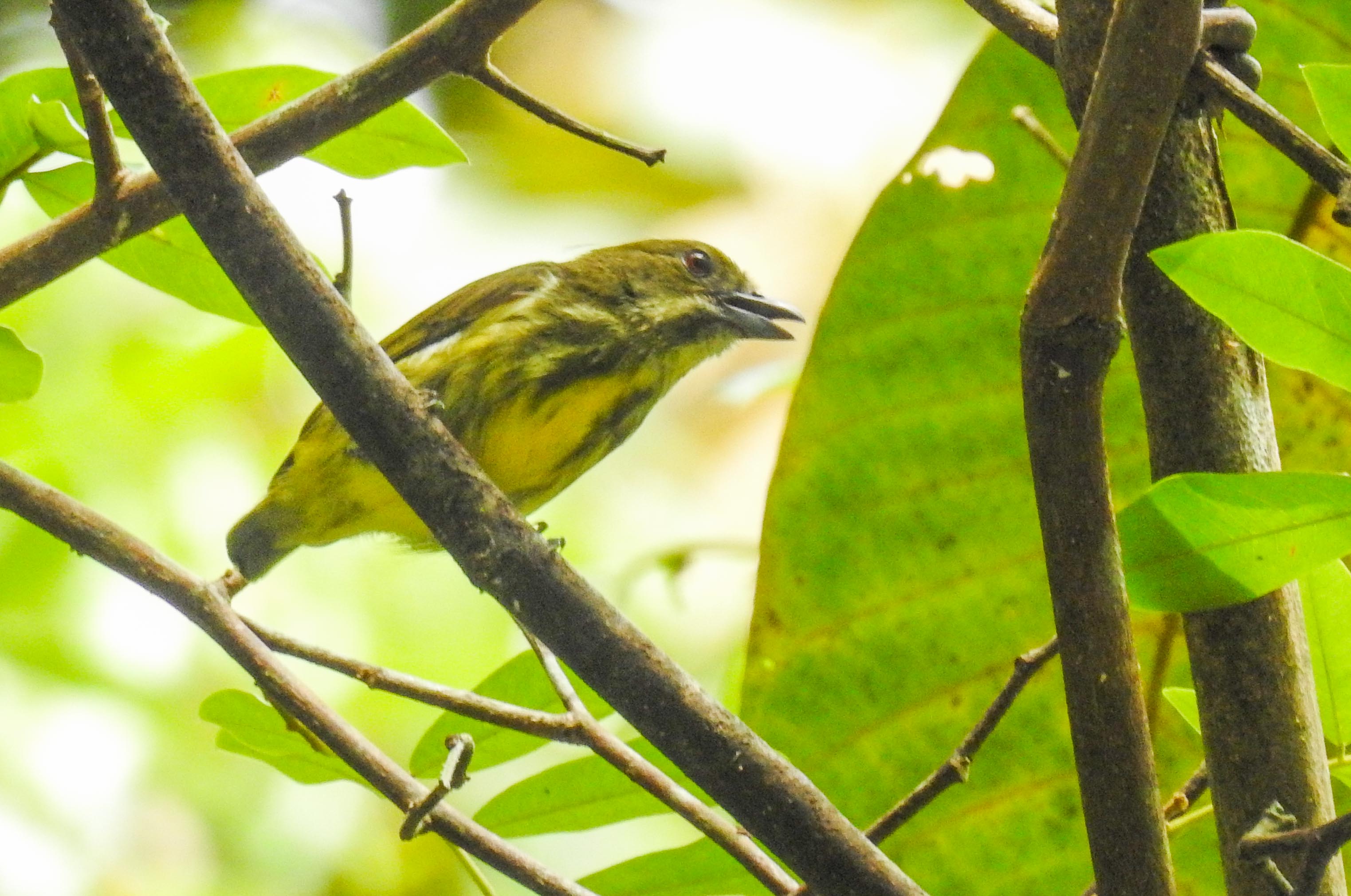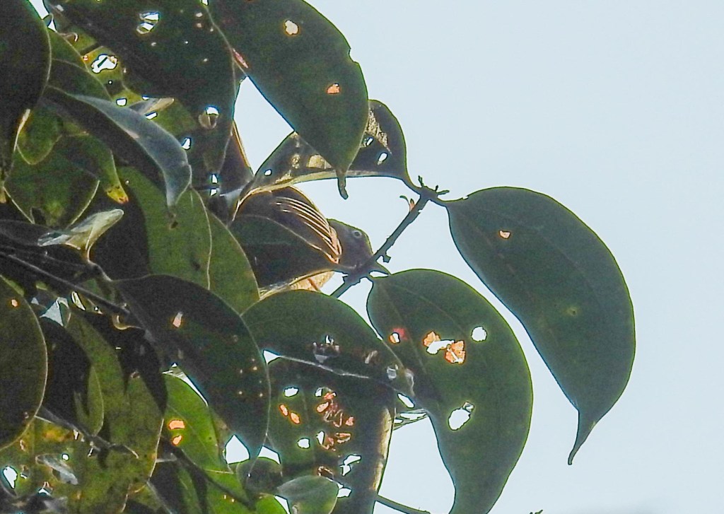 where a dark blue green emerald dove flew inreturning to the main road, this pretty brown fulvetta posed….we then drove down to the end of the road where the stream is and the ranger station is too. By the way, permits are needed to visit Panti and Lenggor and we were asked for the permits by the rangers there…so best be prepared to get the permits before you come to these places!the sooty capped babbler was very activesooty capped babblerthe always charming whiskered tree swiftcrimson breasted flower peckers were everywherecrimson breasted FP with its red splodge on the yellow breastone of them was so unafraid that it perched but 3 feet from methen high up in the trees, a great iora showedgreat ioraa yellow breasted flower pecker also came closeyellow breasted flower peckerinterestingly, the yellow breasted FP also has a bright red spot on its crown, similar to the crimson breasted FP!a streaked bulbul peeked out behind the trunkshy streaked bulbulgrey bellied bulbulthe stunningly beautiful grey bellied bulbul
