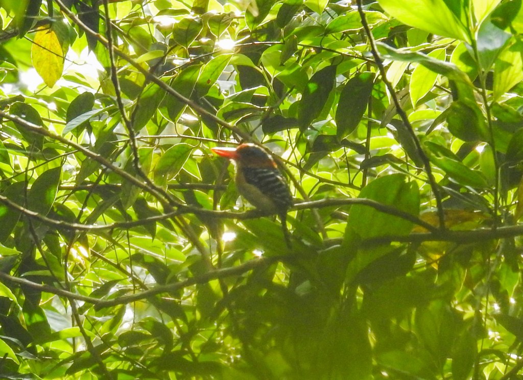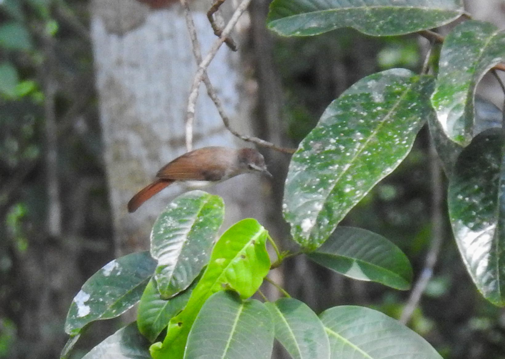 unfortunately this dull distant shot was all I managed of the rare cinnamon rumped trogon