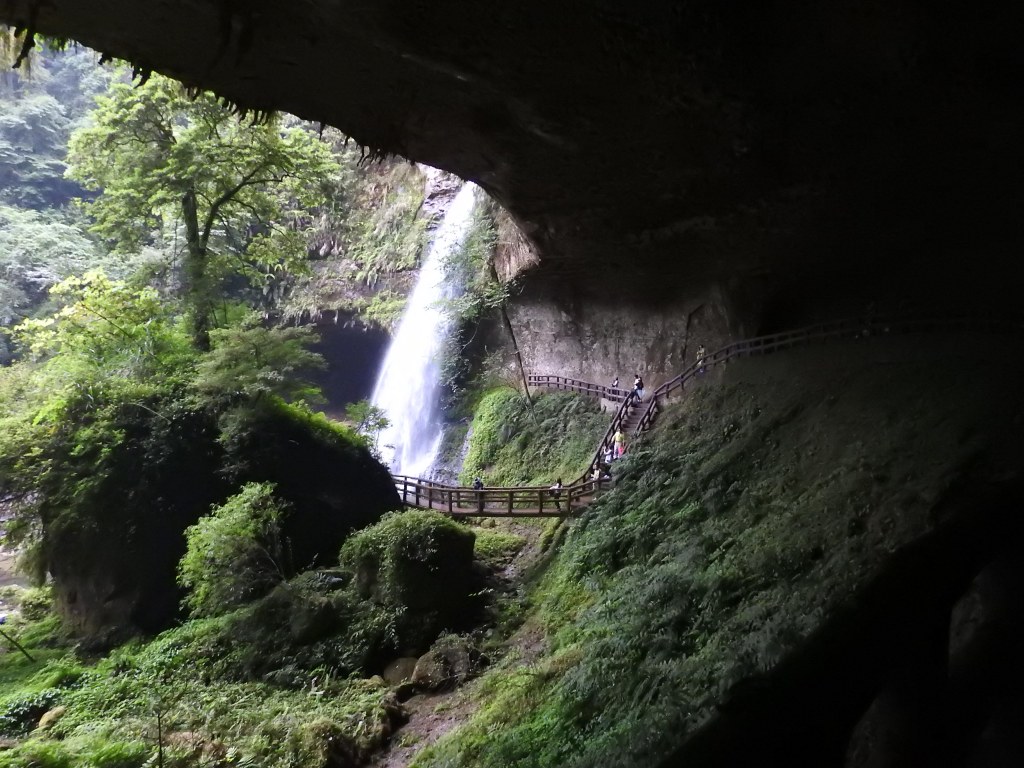 After our meeting ended in Taipei, we did the 2.5hour drive up to a birding location, Sun-Link-Sea Forest in Nantou province in the middle of Taiwan, on our way to the scenic attraction of Sun Moon Lake. It did not bode well that we arrived in SLS Forest in rain with a dark sky. Undaunted, our birding guide MrPao handed out umbrellas and ponchos and we boarded the shuttle bus for the famous waterfall about 10min away….apologies for the poor photos but it was dark and wet…