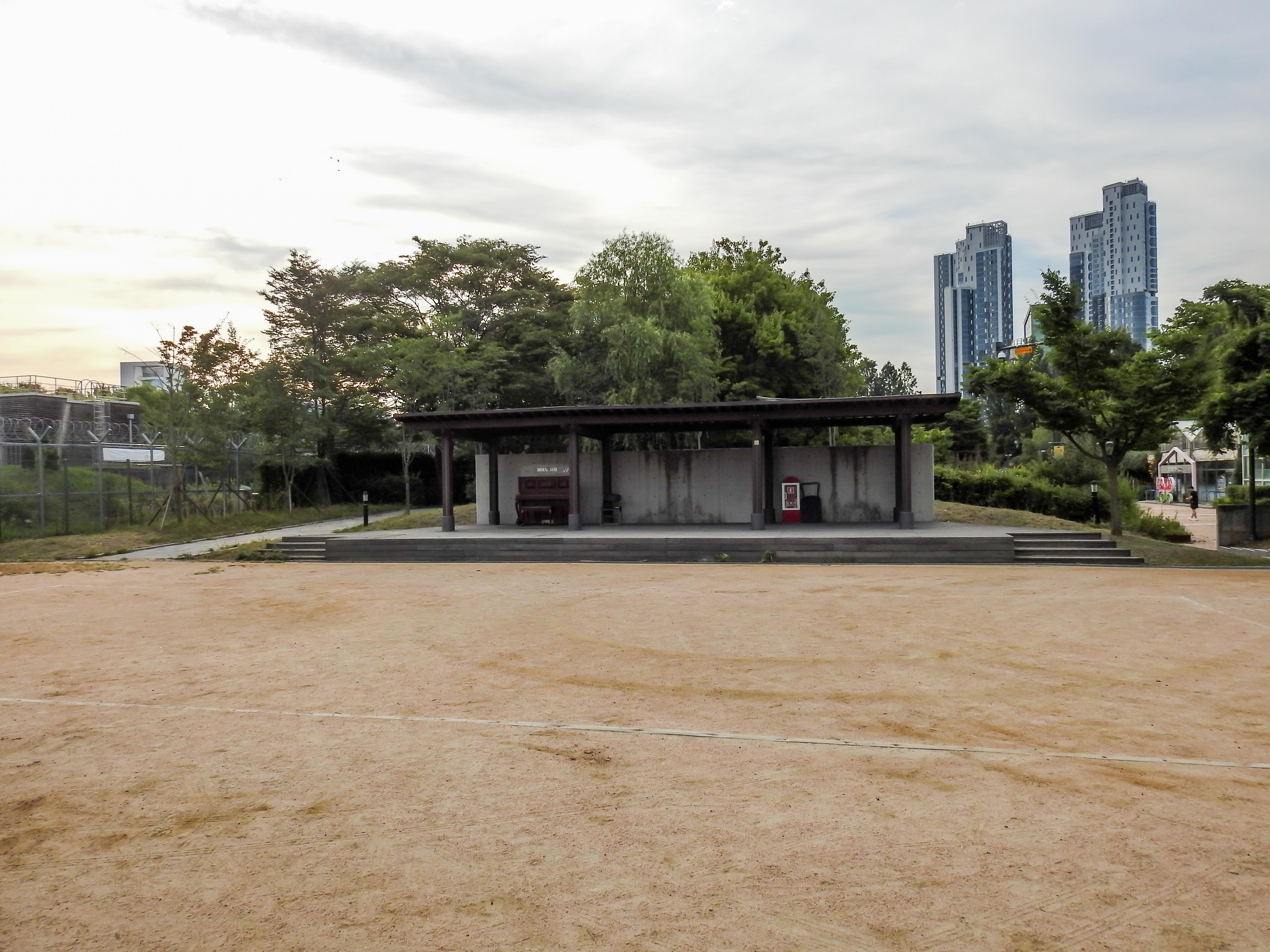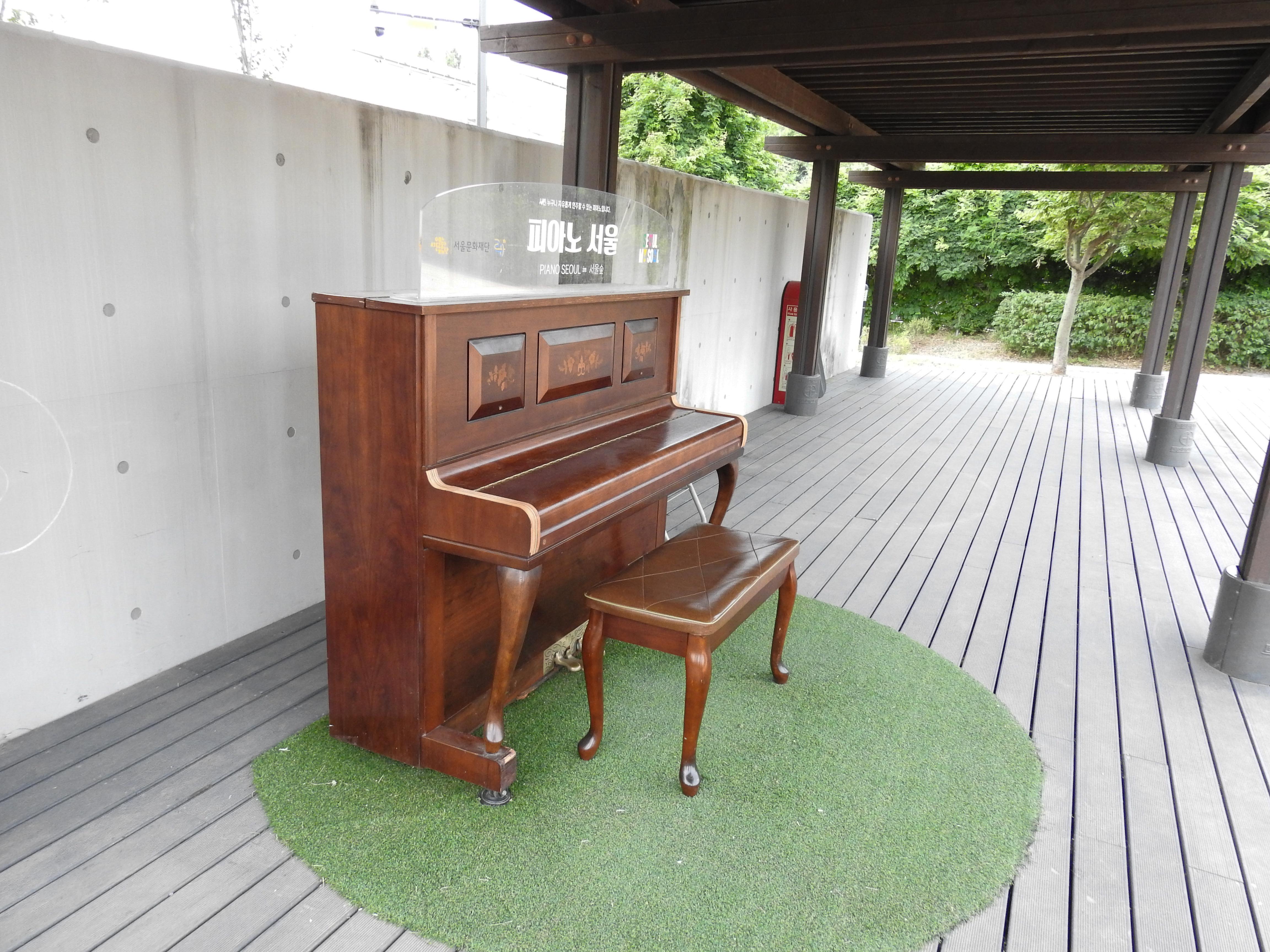 Path leading into the garden…I could hear the sound of Marsh tits and vinous throated parrotbills…the garden was Monet..ish in character…My old friend the brown eared bulbul was the first to show…Sitting amongst the flowers, the tits flitted around but it was difficult shooting them in their exuberance… nevertheless, sitting amongst the summer flowers and just viewing them was pleasant enough. Cutting through the garden, I skirted the car park towards the main part of the park along Apple tree road…Apple tree roadJust wandering around the water plant at the end of Apple tree road, I came across the Experiential Yard, which was a mini auditorium like space and seating around it…it’s no.33 on the mapSurprisingly there was an old piano under the shed and there being no one around at that time, I played a couple of verses from Carole King’s Tapestry….’My life has been a tapestry, of rich and royal hue….’ I normally don’t mix birding with music but it just felt right that morning to indulge in two of my favourite hobbies…birding and tinkling on the piano…..life is good!This eurasian tree sparrow was the only witness to my playing!I then walked along the side of the Insect house arriving at this lovely walkway behind the water plant….this is Cherry Tree path…about 200m long leading to the deer corral….I spent most time on this short walkway as the birds were most active here….First bird in the distance was a grey heron perched on the roof of the water plantand then this handsome fellow flew right down in front of meAn Asian tit, formerly known as the Cinereous Titthen in a flurry of activity, this lovely chestnut capped bird and a few of his mates flitted around…the Vinous throated parrotbill! Also known as Webb’s parrotbillVinous throated parrotbillsOriental magpies were common too..more brown eared bulbuls showed upthis is the far end of cherry tree path beyond which you walk under a huge overpass to the deer corralthere is an elevated skybridge over the deer corral, leading to the main road and the Han river at the other end…Water bodies along the way and lots of oriental magpiesthere was an interesting modern sculpture at the begining of the skywalkanother brown eared bulbulthen on my way back, several active Marsh Tits appearedMarsh titthe Asian tit also came againAsian titand among the ferns the vinous throated parrotbill also posedVinous throated parrotbill beautifully contrasted by the silver ferns