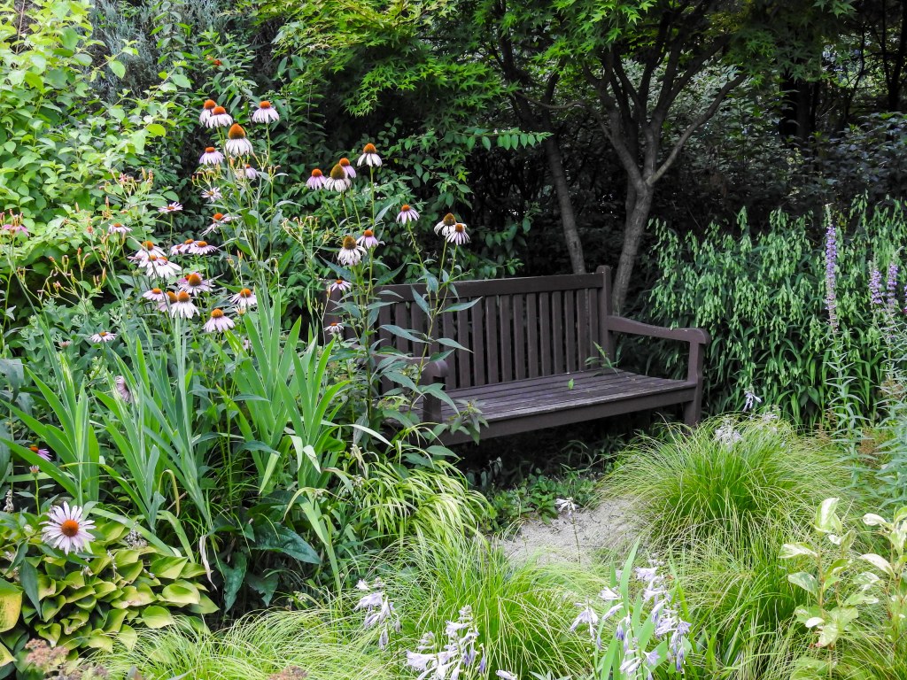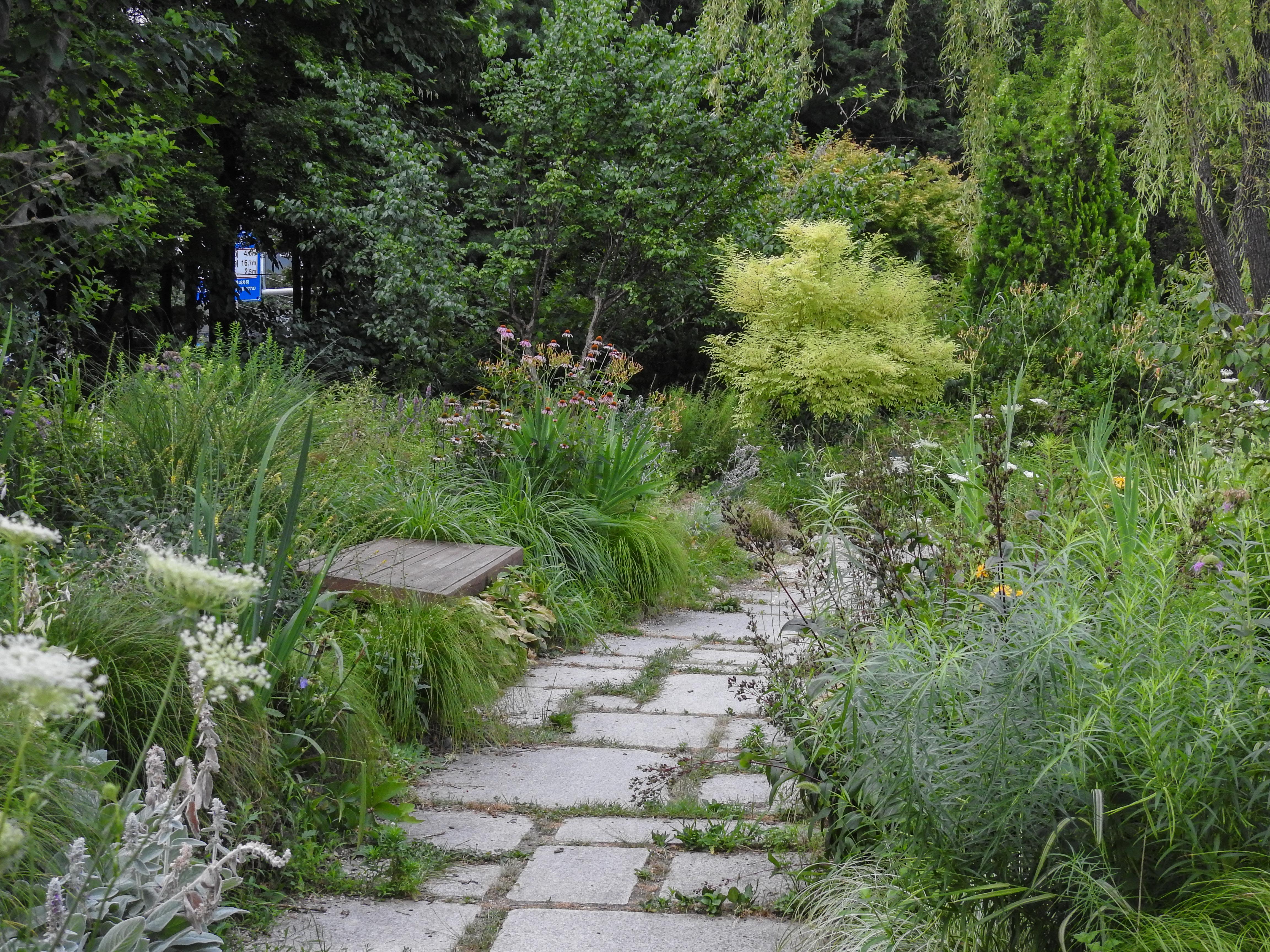 On walking through the car park, I noticed a charming little garden on the left where summer blooms and bird song beckoned….